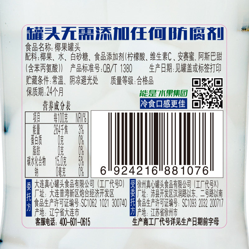 真心罐头正品椰果罐头糖水水果罐头老式小瓶装248g东北零食