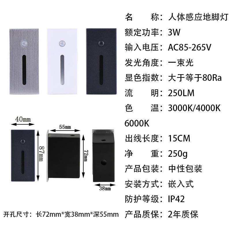 人体感应台阶灯酒店别墅过道灯电影院楼梯踏步灯3W侧壁阶梯灯
