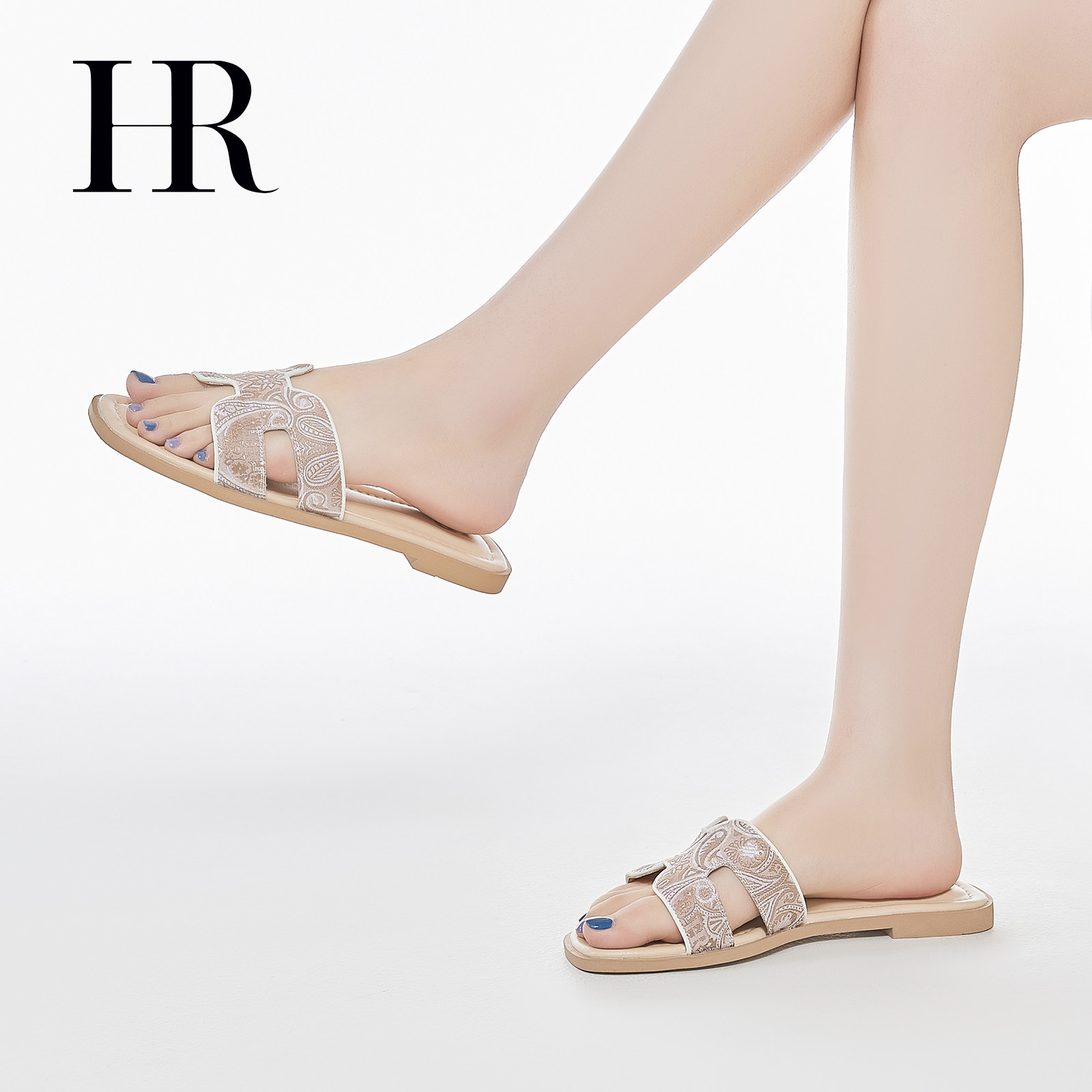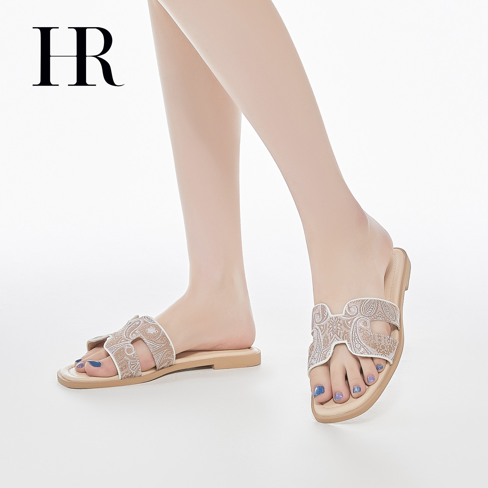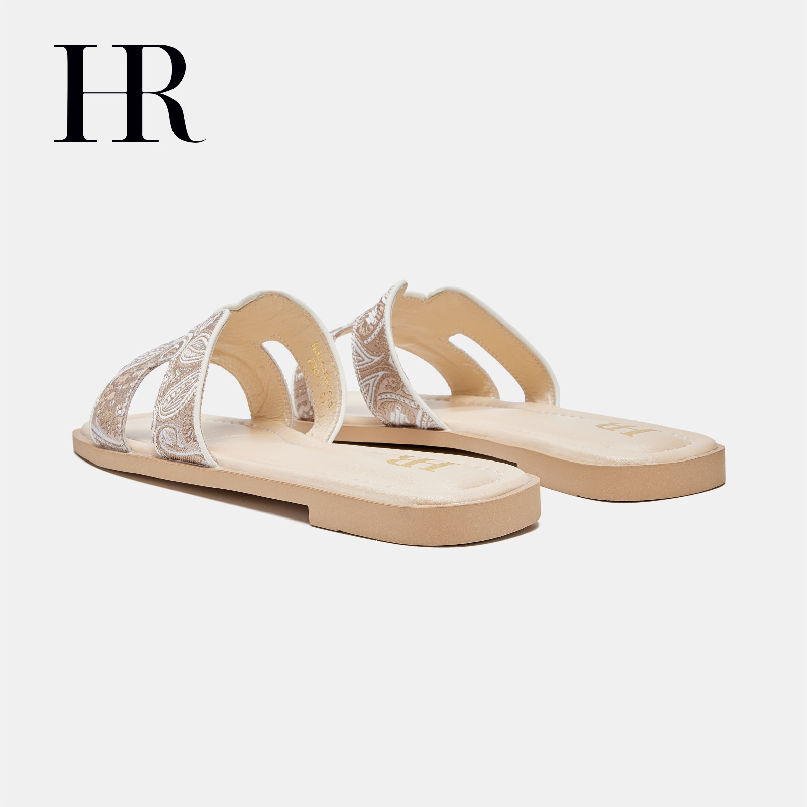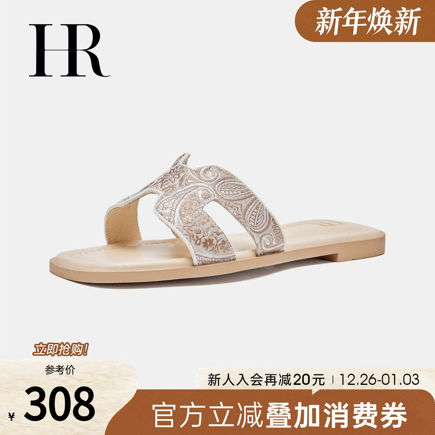 HR赫莲娜女鞋子2025夏季新款一字拖鞋平底国风刺绣小众外穿沙滩鞋