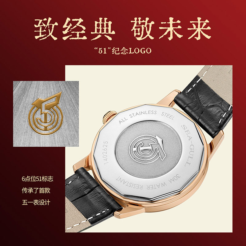 海鸥表手表男士皮带复古休闲男表简约复刻腕表D51SG