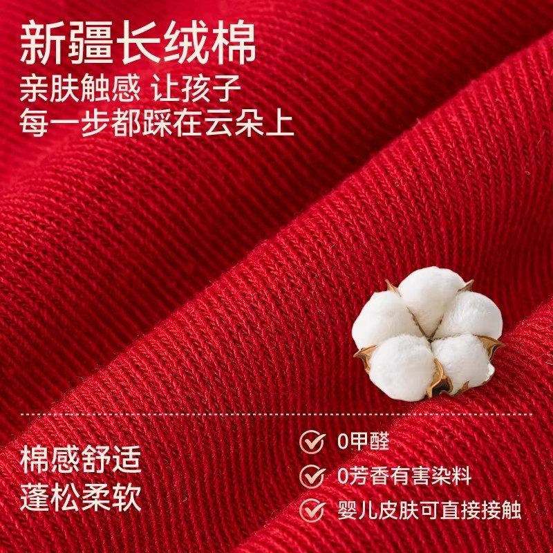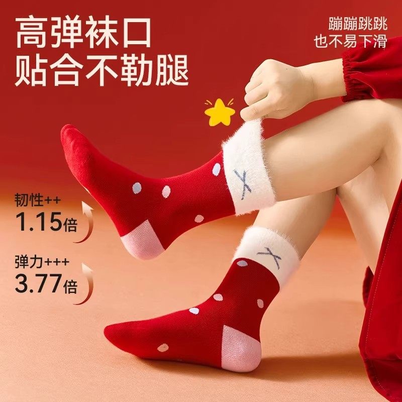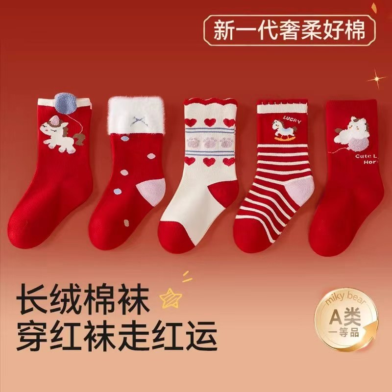 儿童袜子红色秋冬季纯棉棉袜男女童本命年中筒袜宝宝大童马年新年