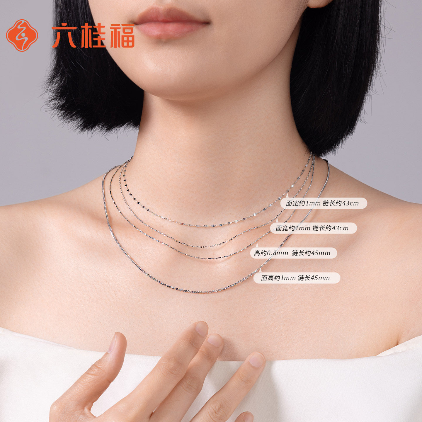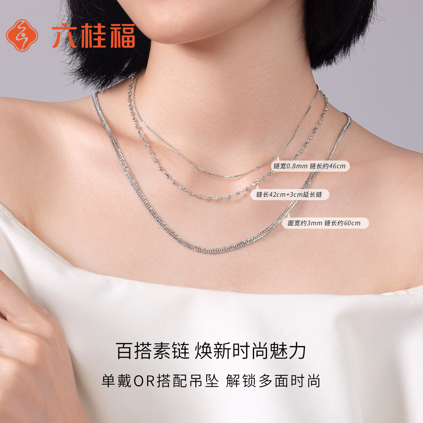 六桂福珠宝铂金项链女款白金嘴唇素链可调节配吊坠新年礼物