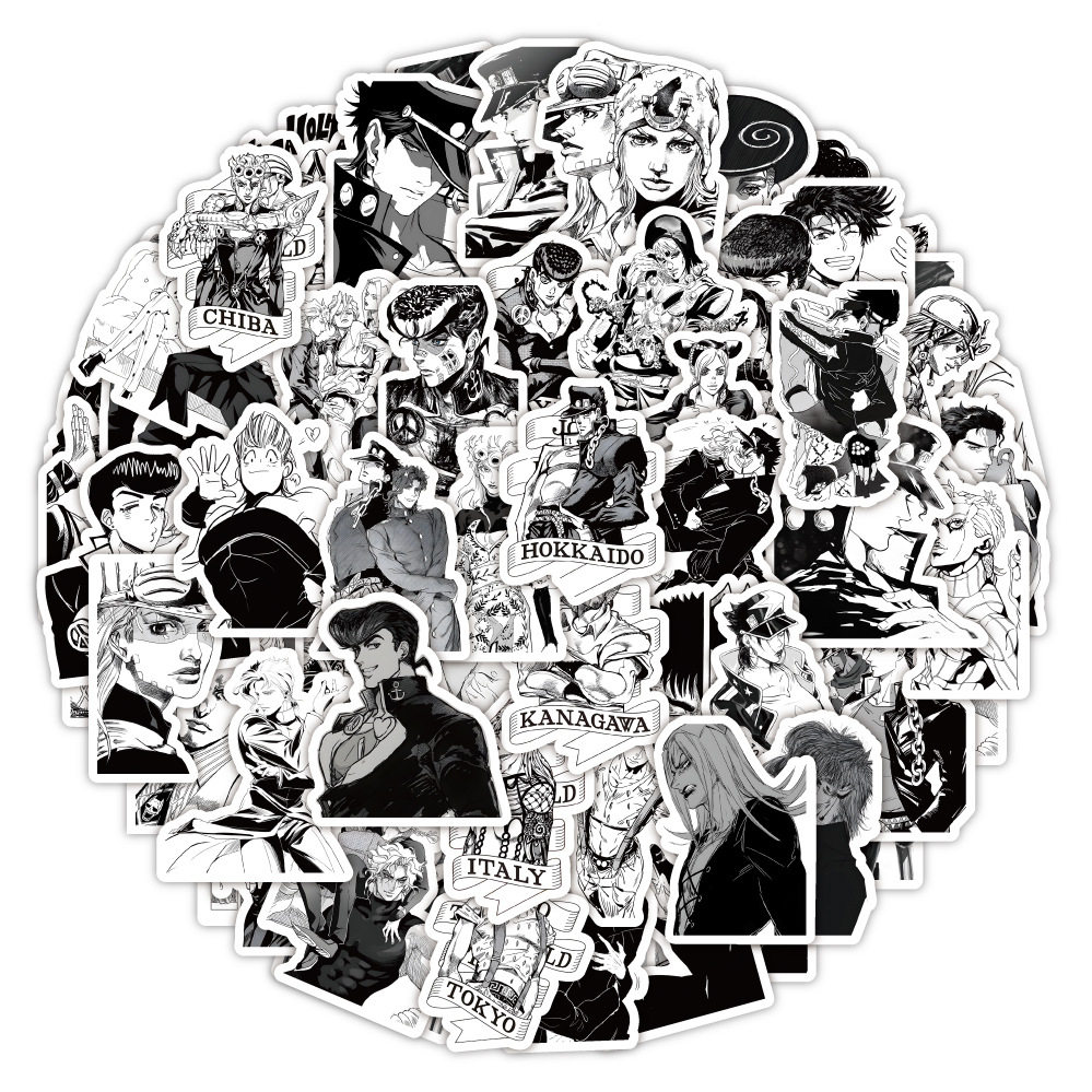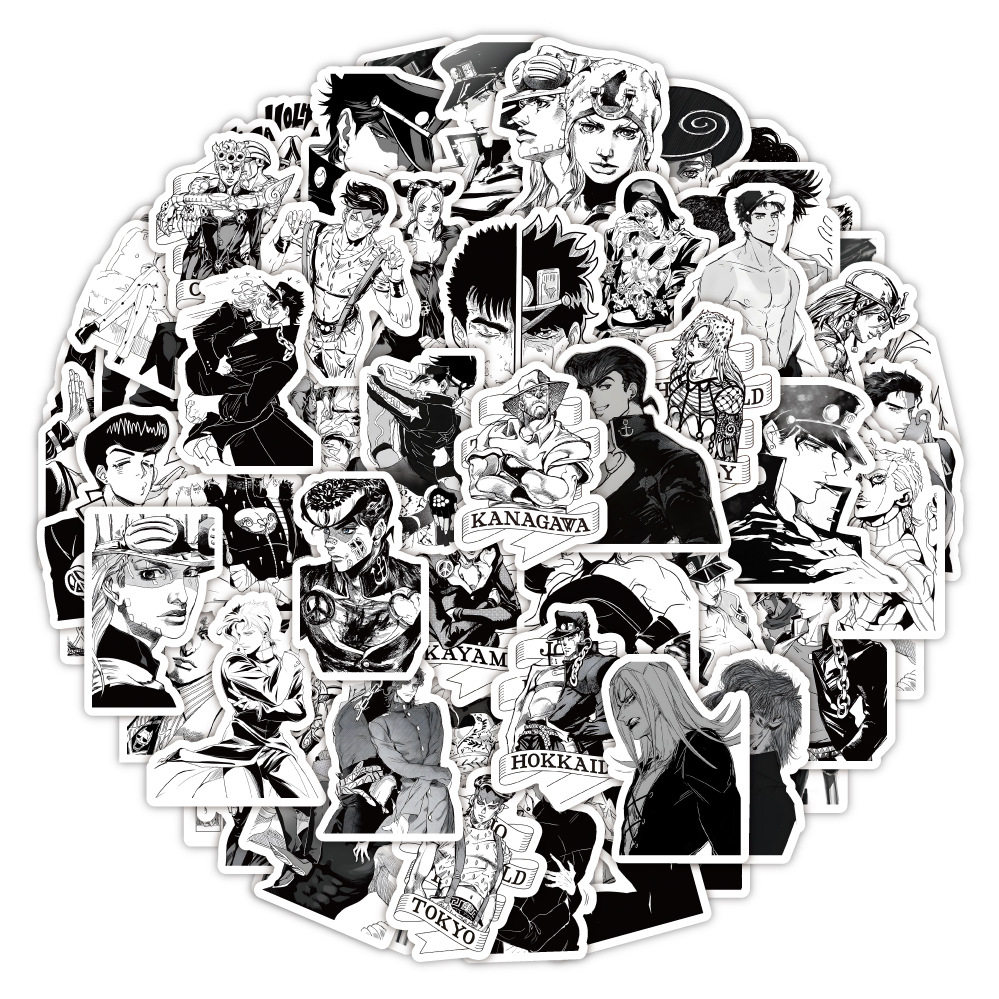 60张黑白jojo-贴纸手账装饰行李箱笔记本滑板车贴画厂家