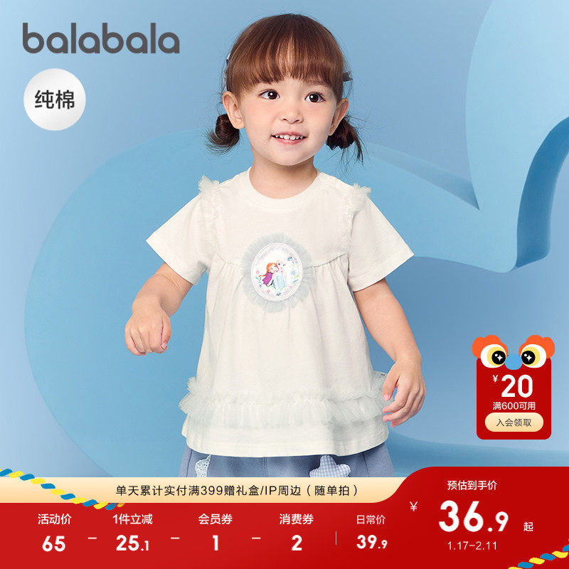 【迪士尼IP】巴拉巴拉宝宝短袖t恤女童上衣2025新款夏装甜美时尚