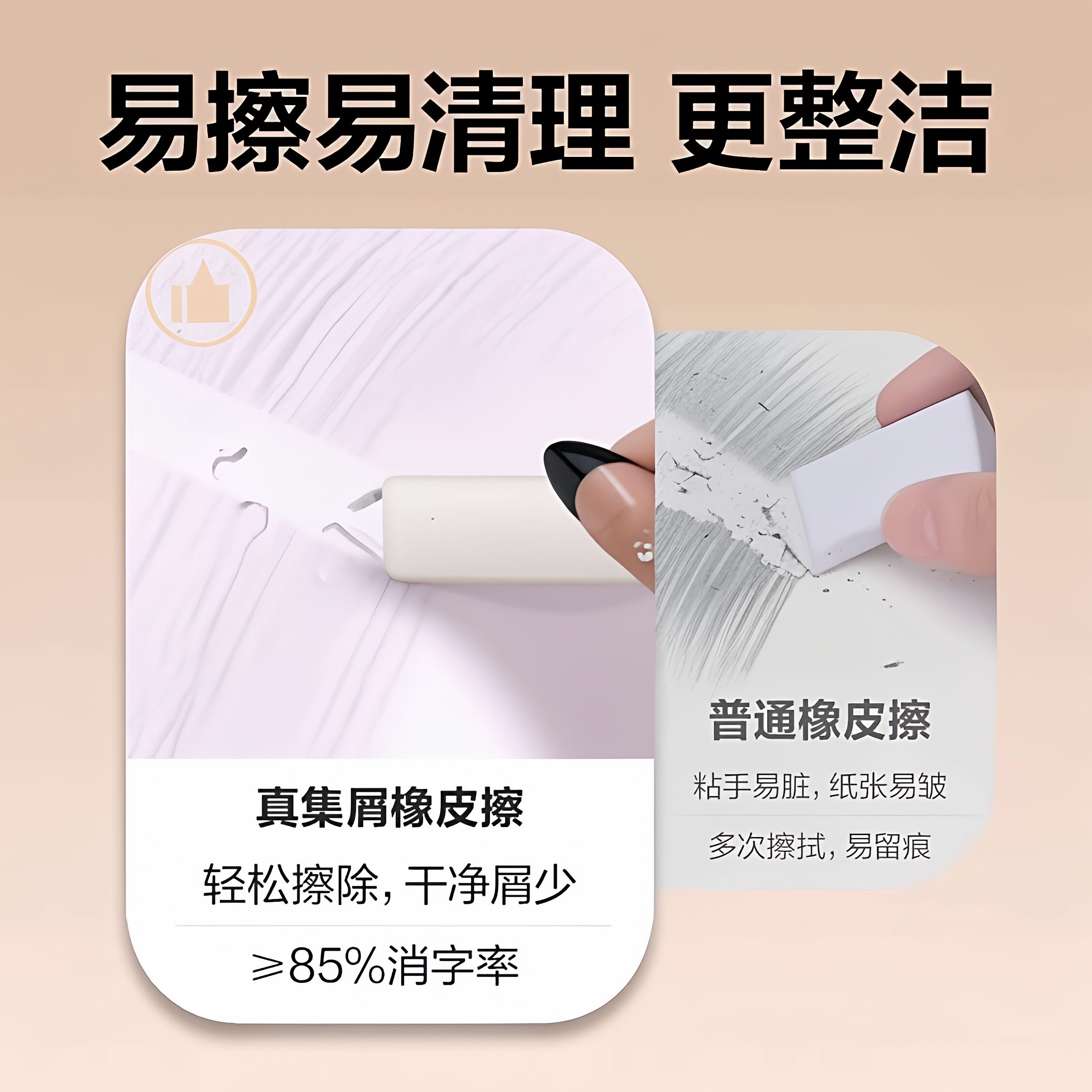 集屑三角橡皮擦小学生专用擦字成线擦拭成条干净不留痕2B少屑橡皮