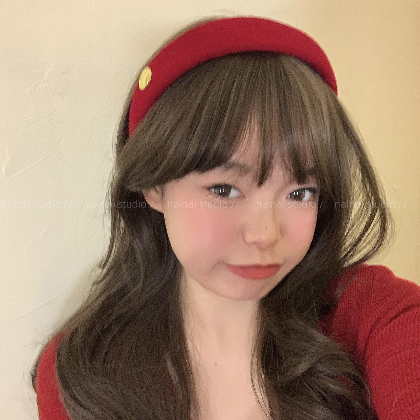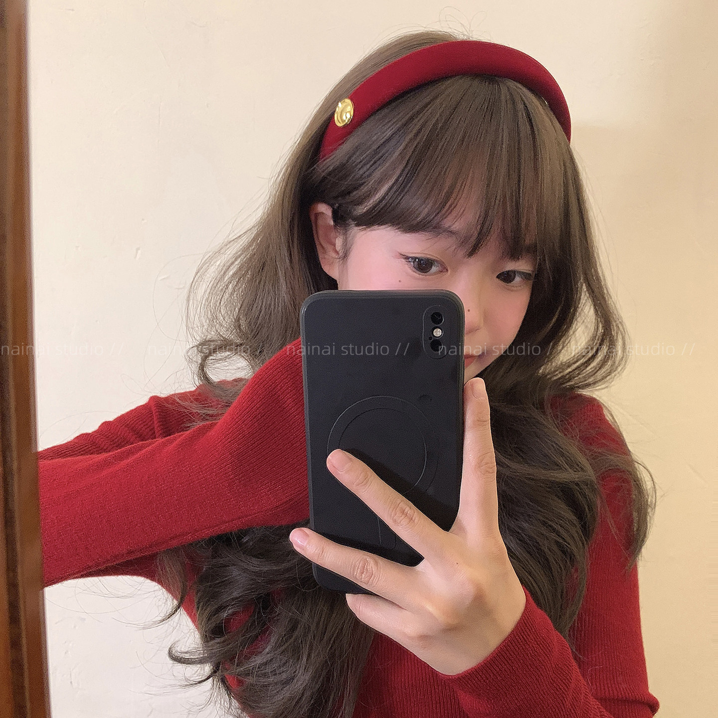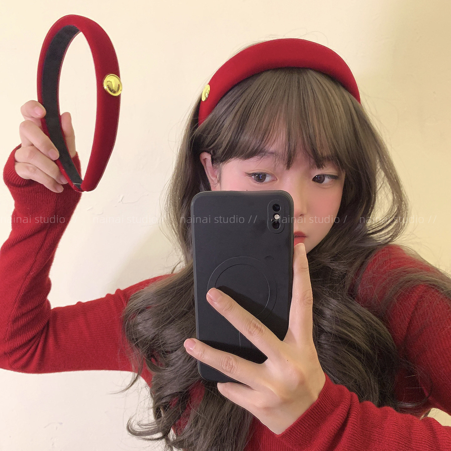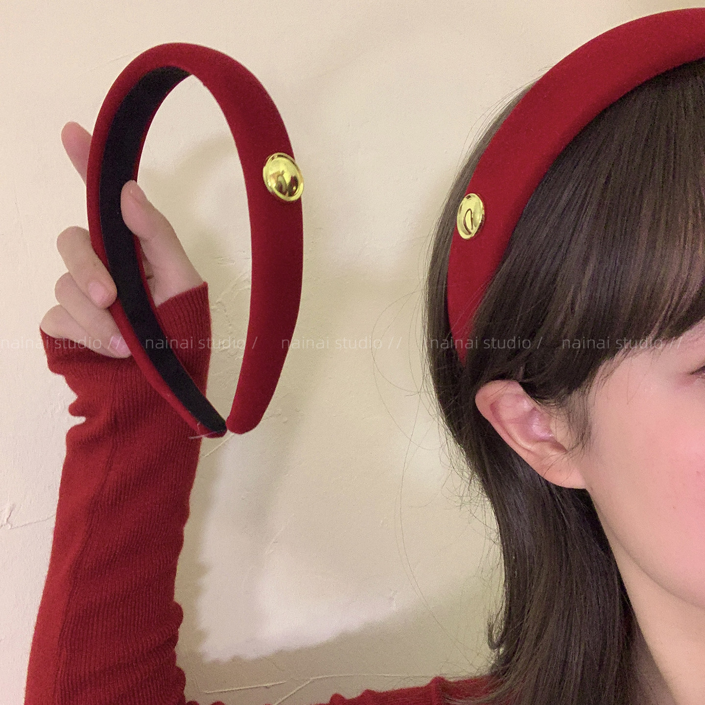酒红色新年发箍~高级感丝绒高颅顶头箍节日氛围感发夹发饰发卡女