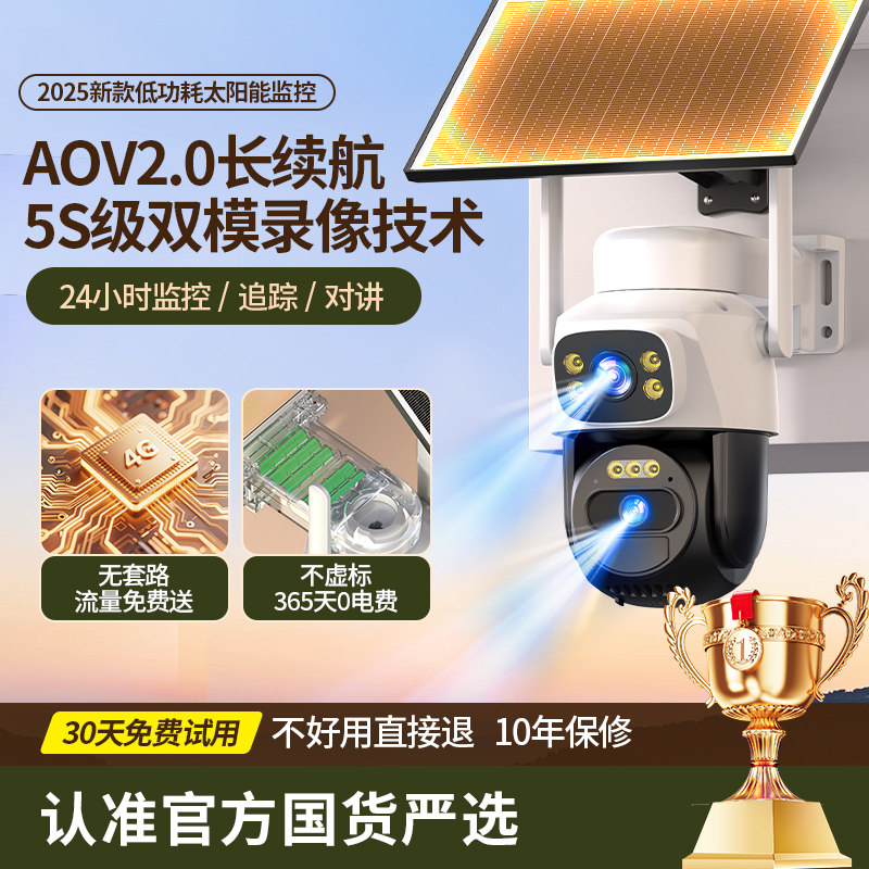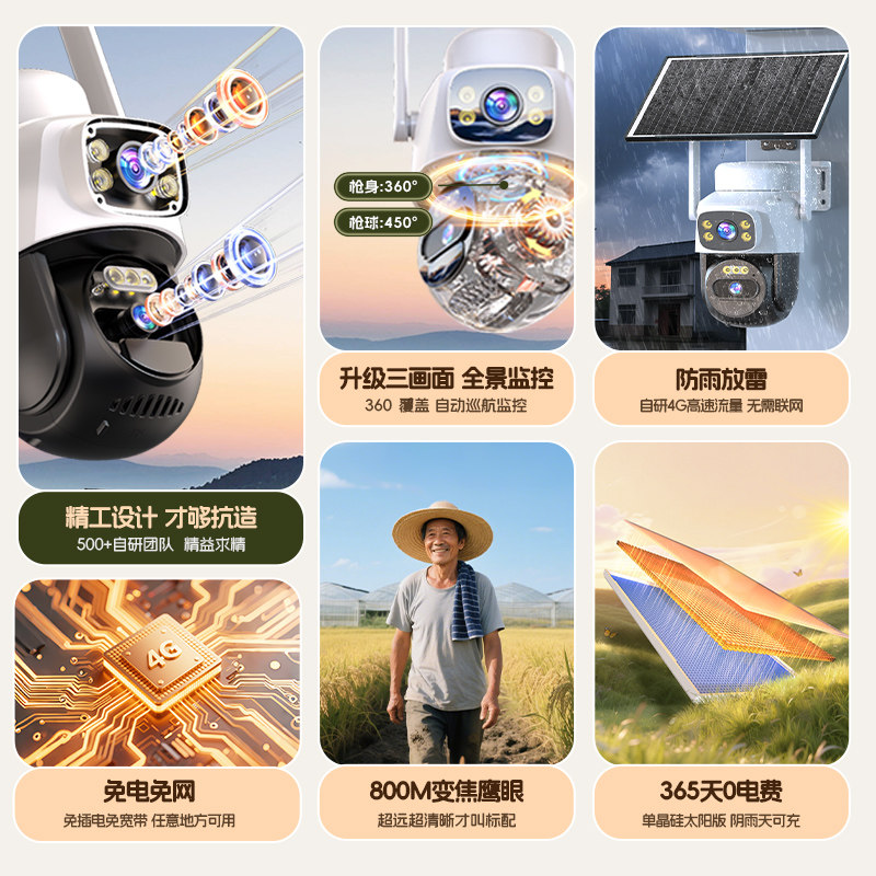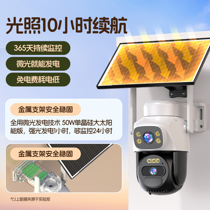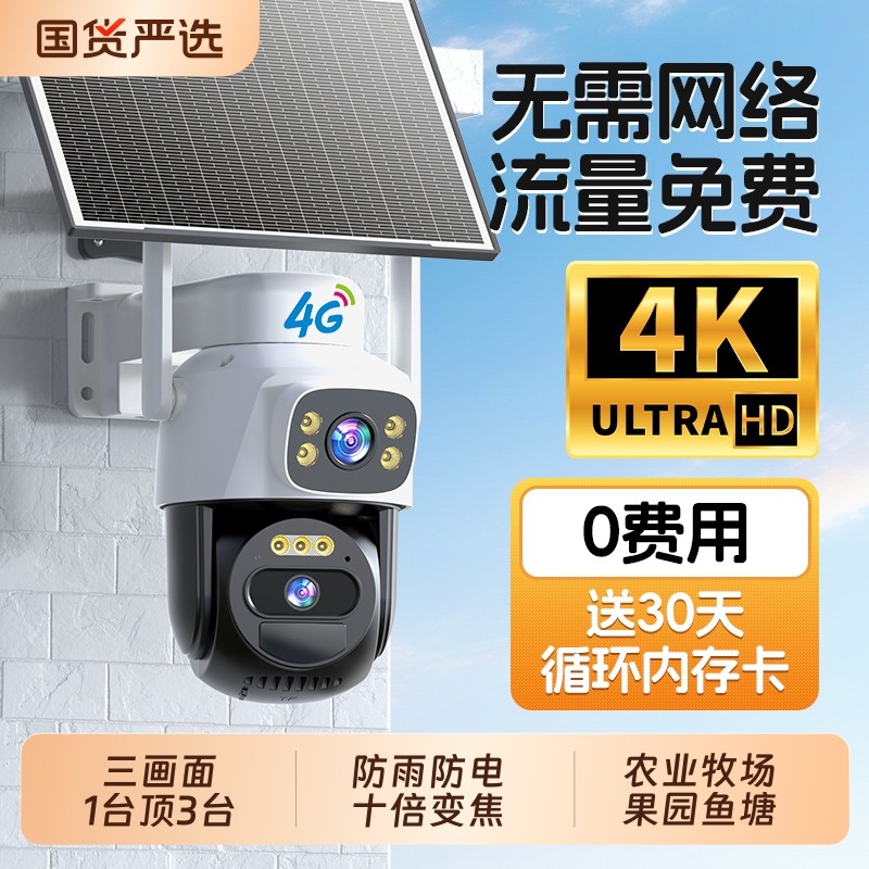 太阳能监控器摄像头360度无死角手机远程无需网络室外高清夜视4G