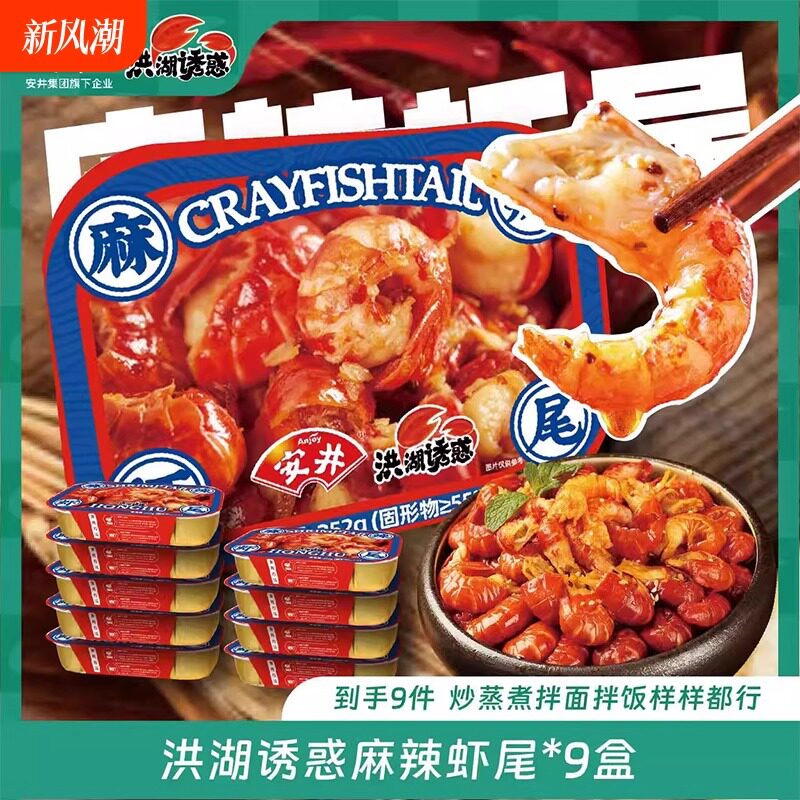 安井洪湖诱惑麻辣虾尾252g/盒小龙虾尾冷冻加热即食小龙虾蒜蓉