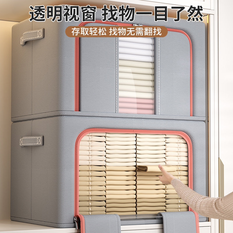 佳帮手衣服收纳箱家用装衣物被子百纳箱布艺可视窗衣柜专用整理箱