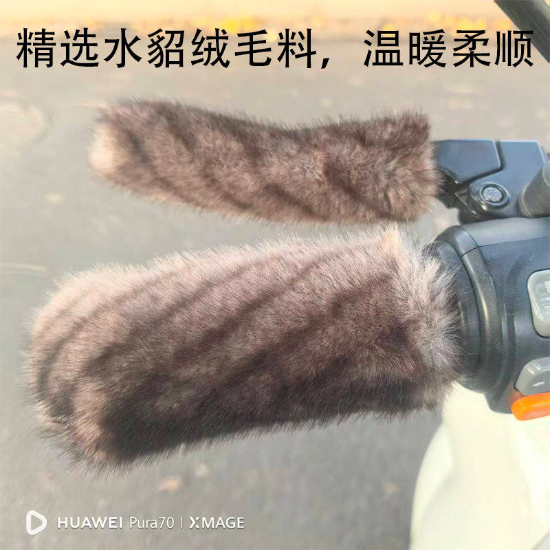 新款电动车毛绒把手套加厚通用冬季保暖防滑防寒电动车摩托车把套