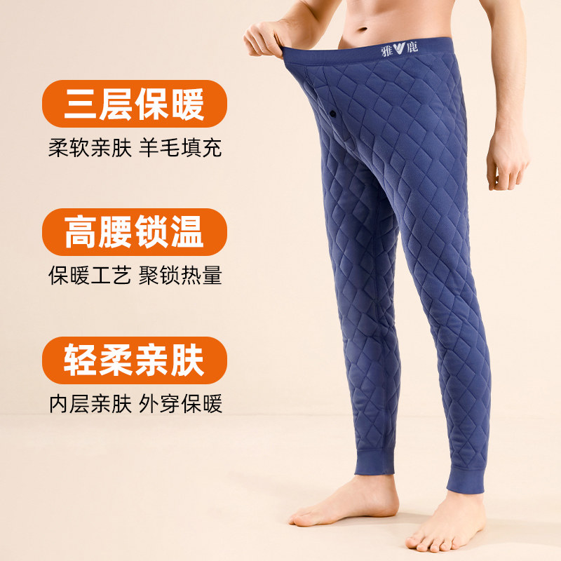 小暖羊松山棉店男士保暖打底裤高腰加厚加绒羊毛裤线裤秋裤棉裤冬