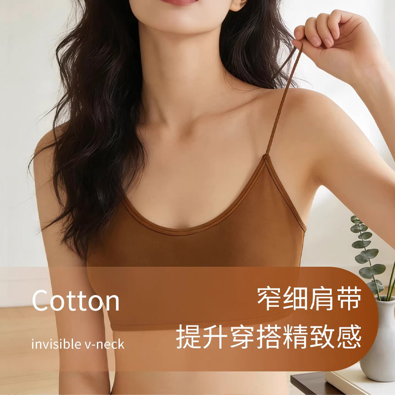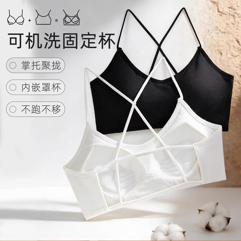 无痕美背抹胸内衣女小胸聚拢可外漏细肩带一体固定杯背心式文胸罩