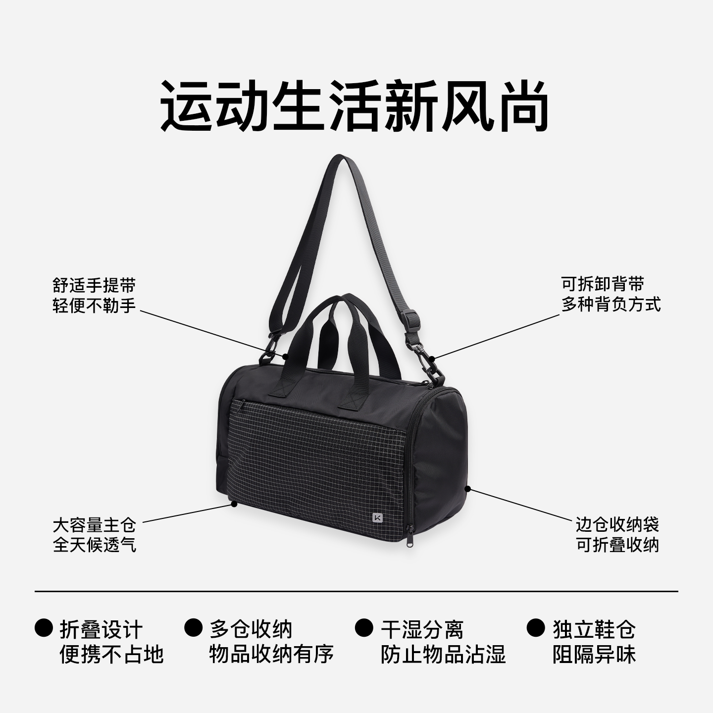 Keep健身包干湿分离防水包大容量男女可折叠游泳收纳多功能健身包