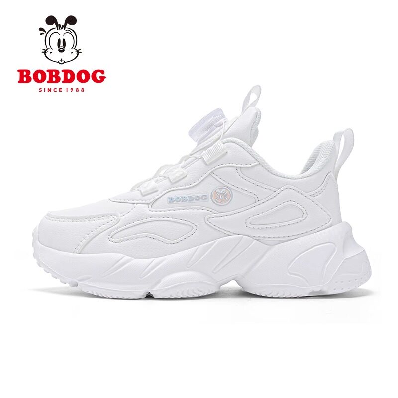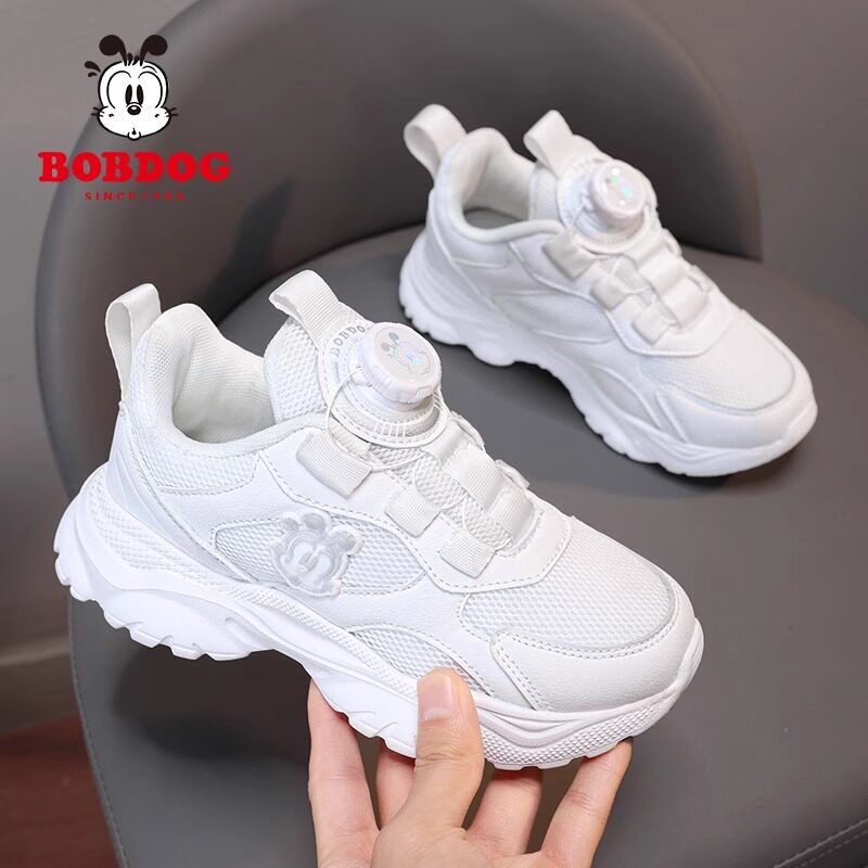 巴布豆儿童小白鞋男童白色运动鞋2024新款学生纽扣鞋女童白色鞋子