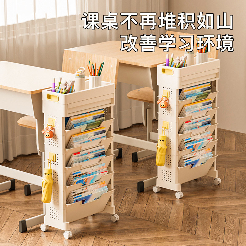 可移动桌边书架书桌收纳置物架学习桌侧边收纳书桌旁小书架儿童不占空间学生教室高中生书包书本书籍课桌神器