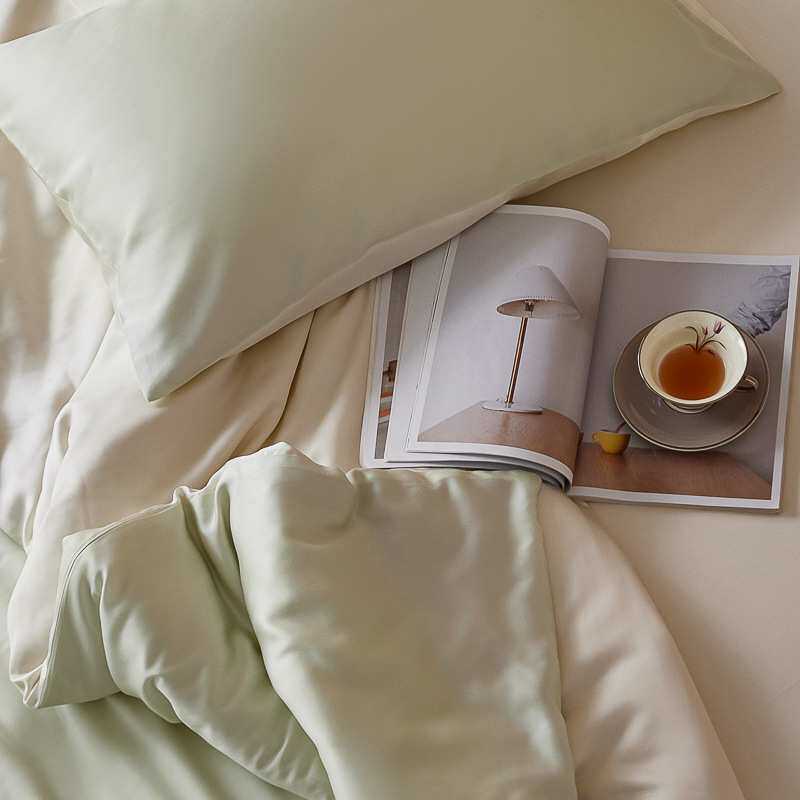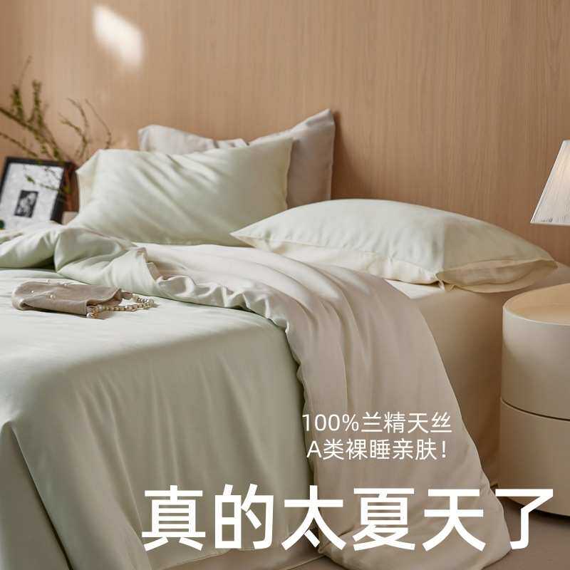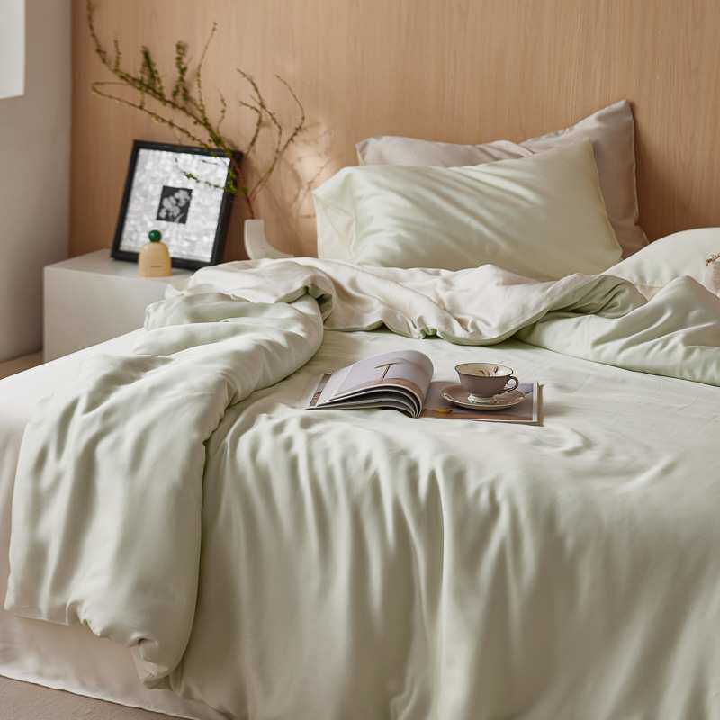 真的很夏天~轻奢a类60支兰精天丝四件套双拼纯色凉感裸睡丝滑套件