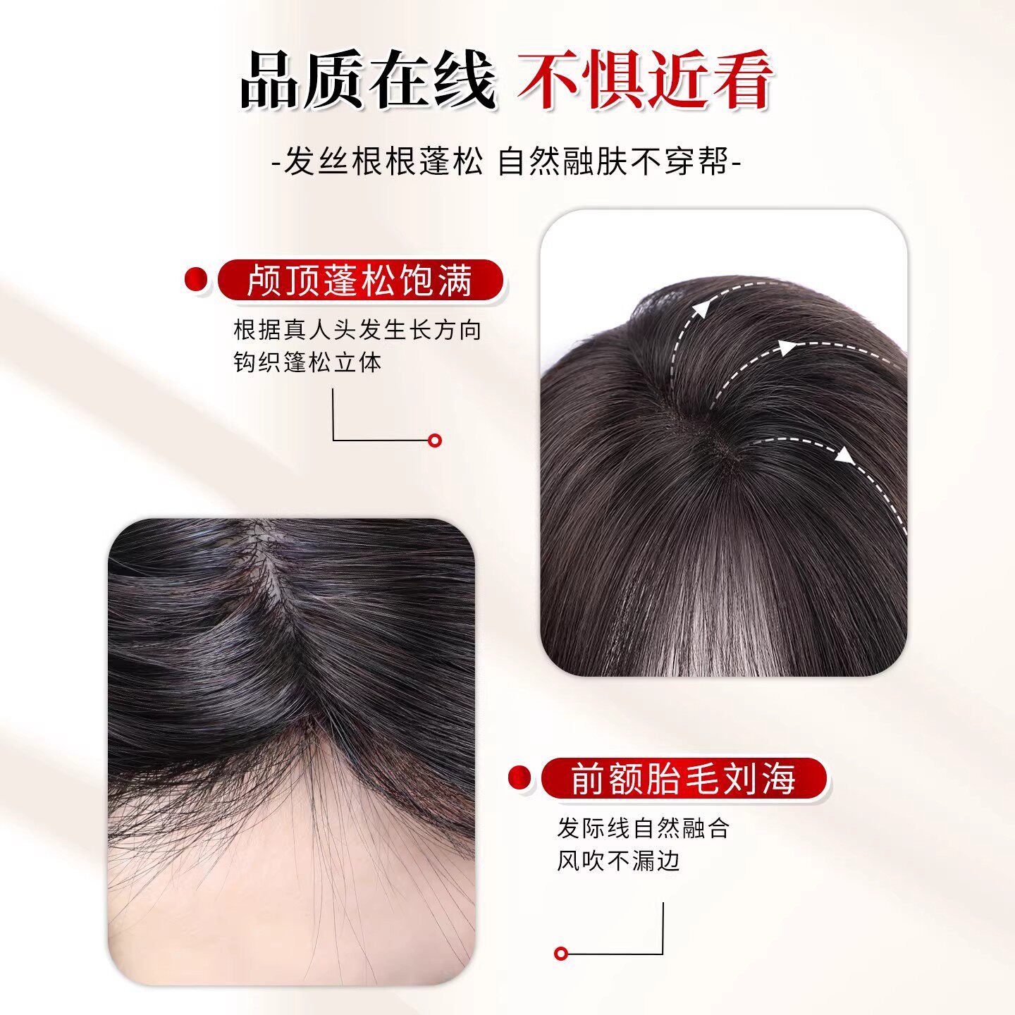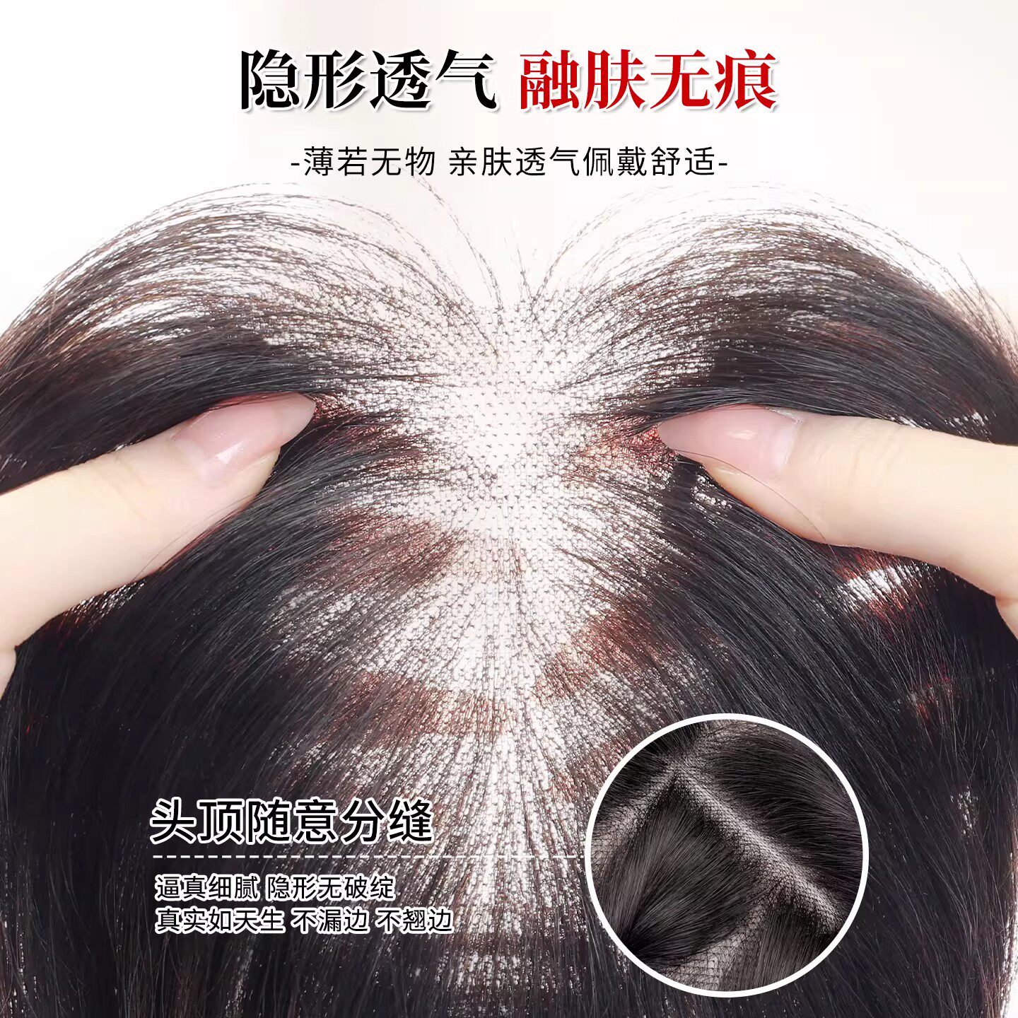 假发女片头顶增发量蓬松高颅顶全真人发遮白发自然隐形无痕补发片
