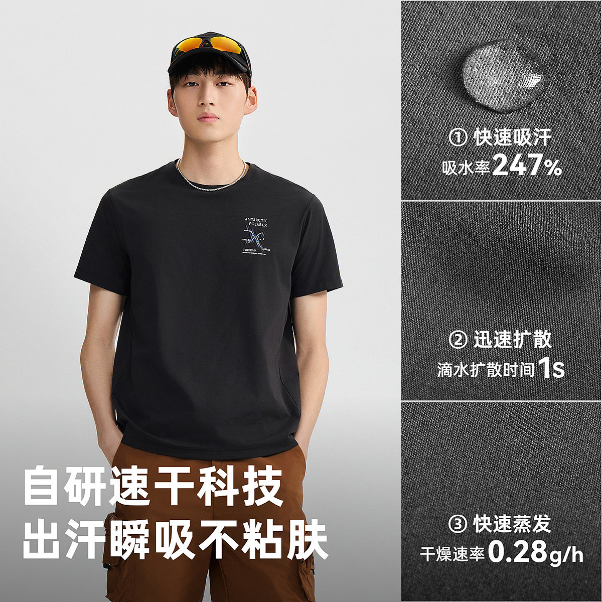 伯希和速干T恤男透气圆领黑色休闲短袖上衣户外徒步运动半袖内搭