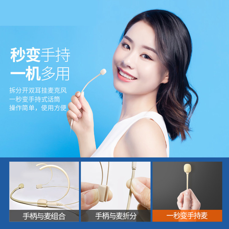 适用TaKstar得胜小蜜蜂扩音器专用肤色有线头戴麦双耳挂隐藏耳麦