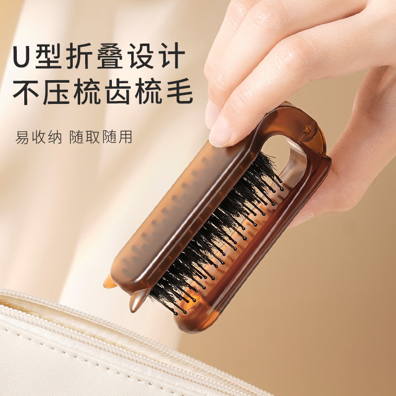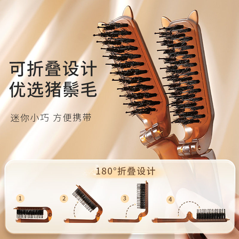 猪鬃毛小梳子便携随身可折叠蓬松颅顶刘海女士专用按摩卷卷发神器