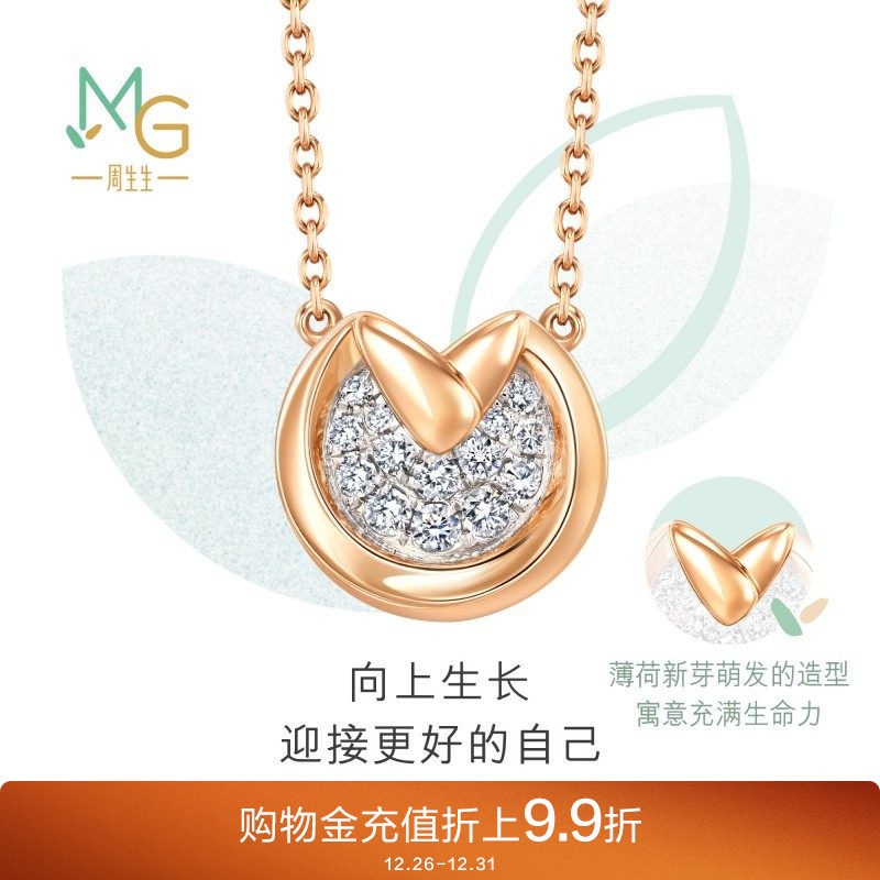 周生生萌芽系列钻石项链18k金套链女生锁骨链93984N