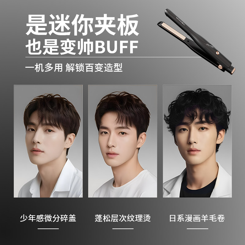 茉心男生夹板卷发棒直发两用负离子蓬松男士造型直板夹烫发夹神器