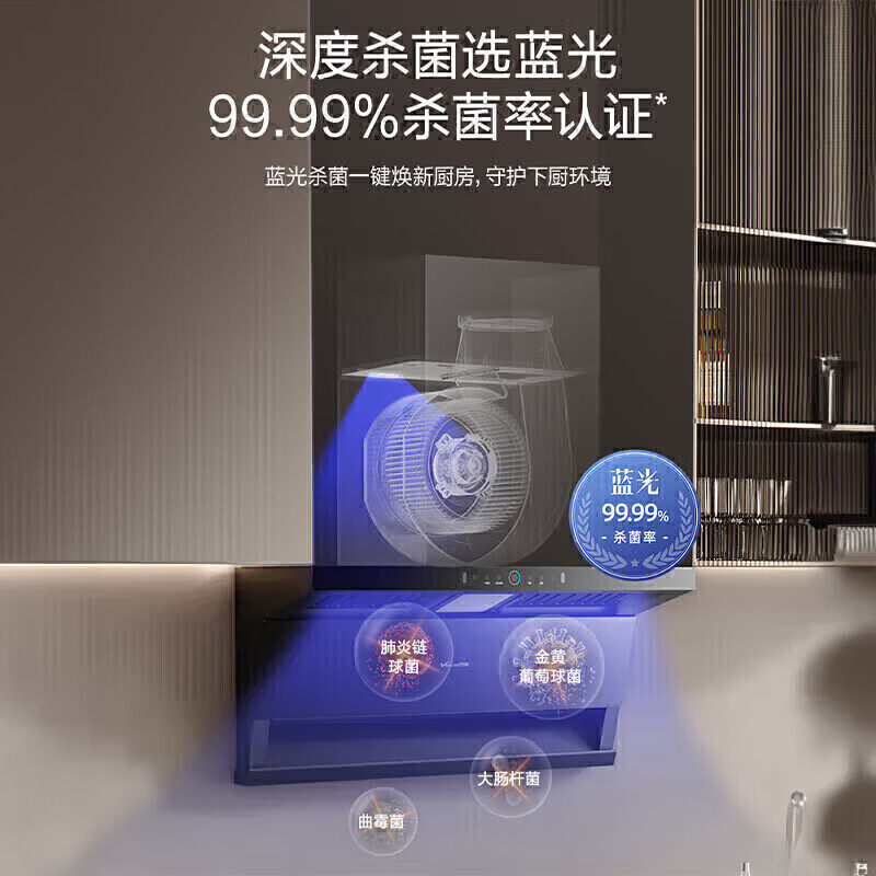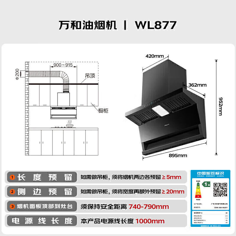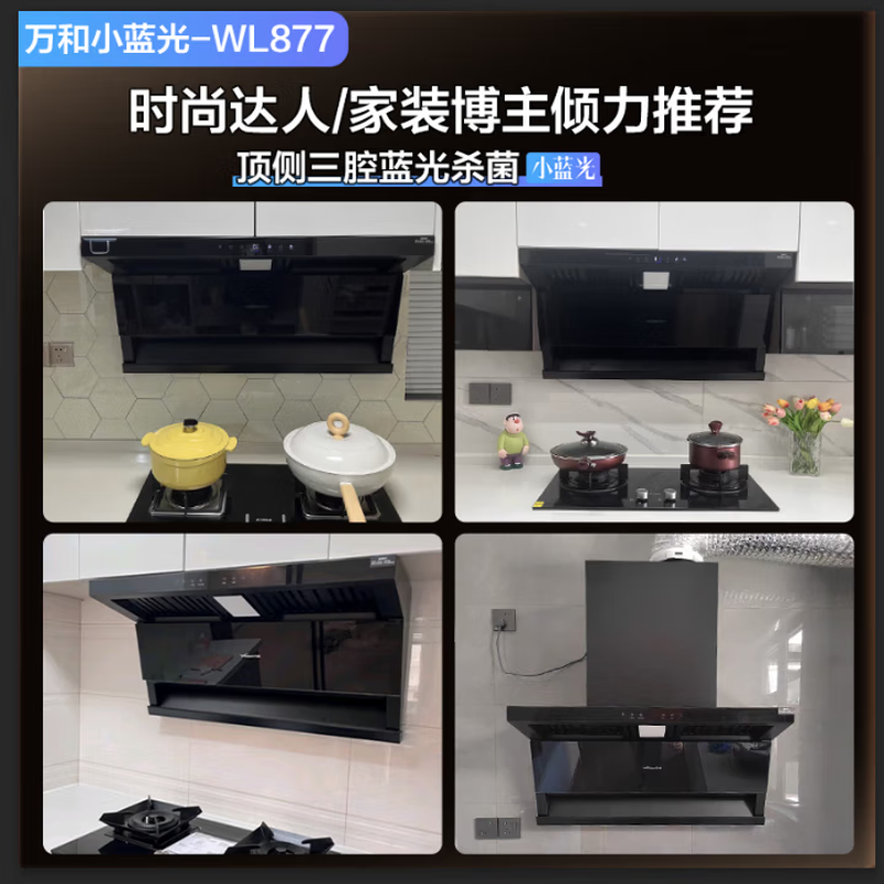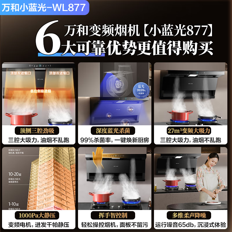 万和蓝光杀菌油烟机变频厨房大吸力免手洗智能烟机顶侧双吸WL877