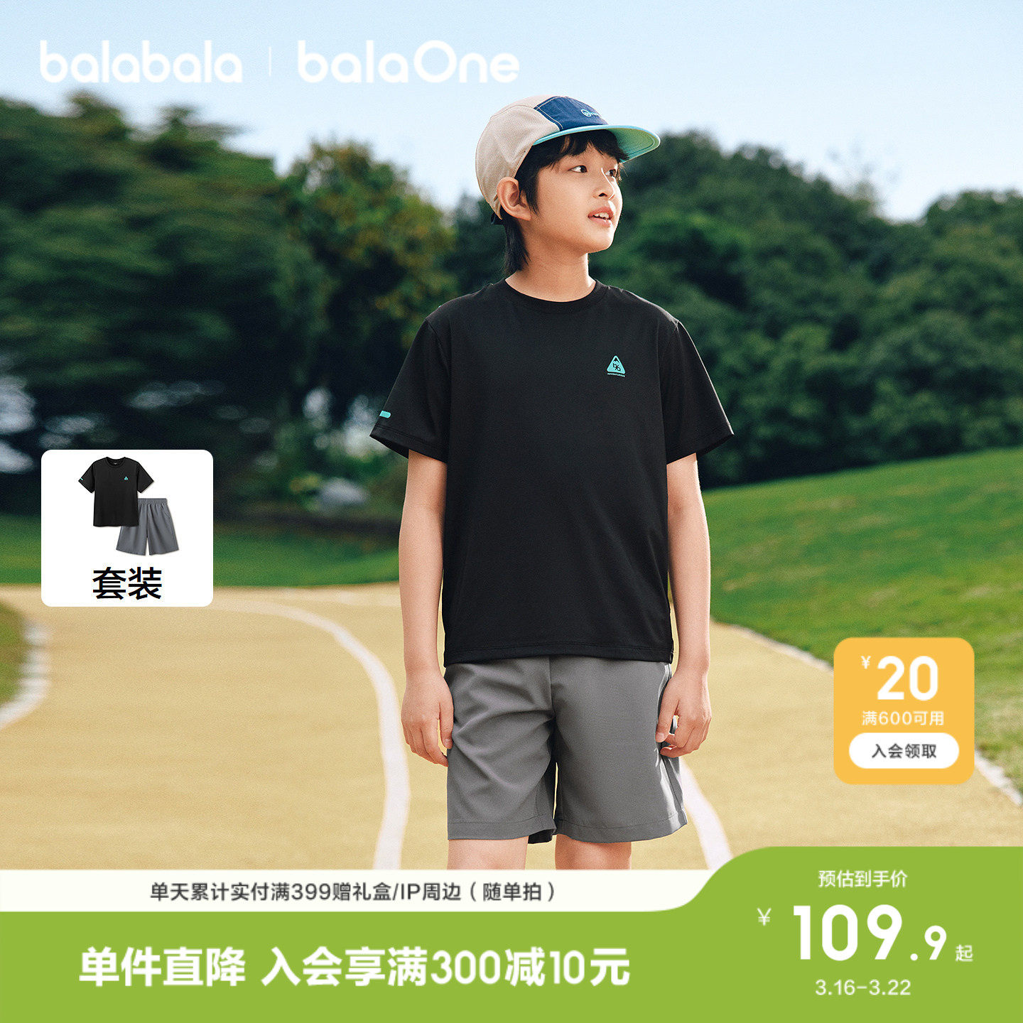 巴拉巴拉男童短袖套装儿童中大童两件套2026新款夏装速干舒适上衣