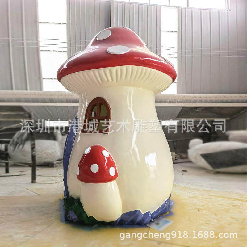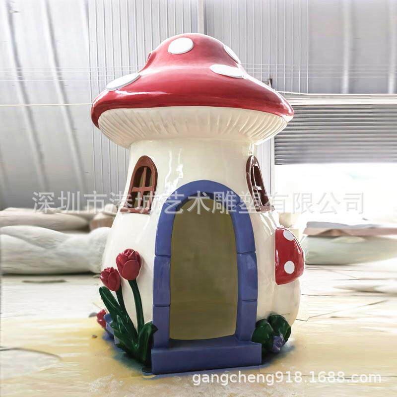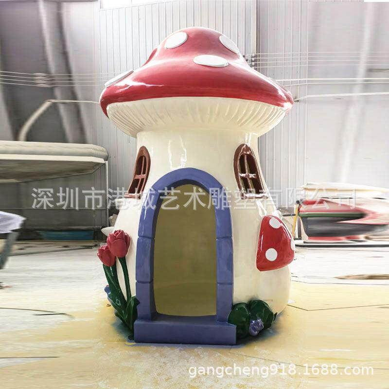 户外玻璃钢仿真大蘑菇房子屋雕塑庭院花园林景观植物凉亭装饰摆件