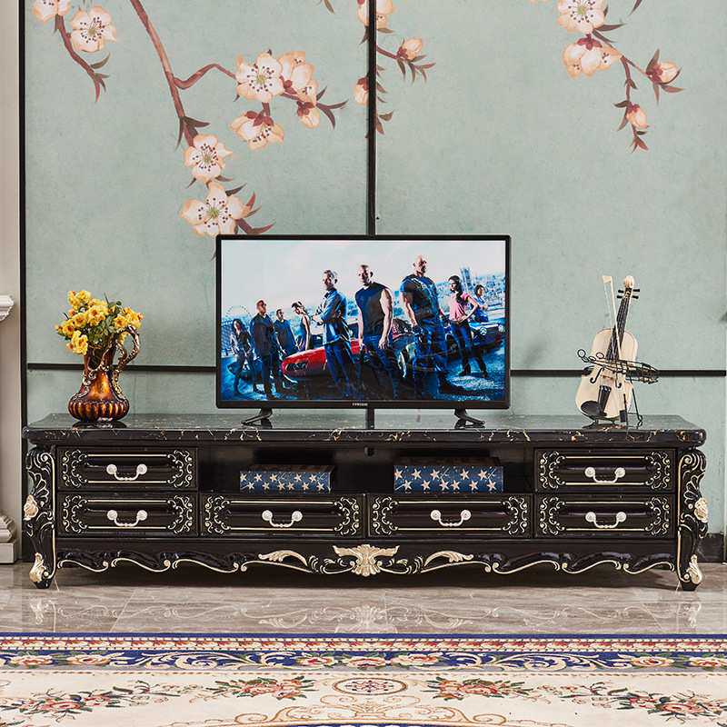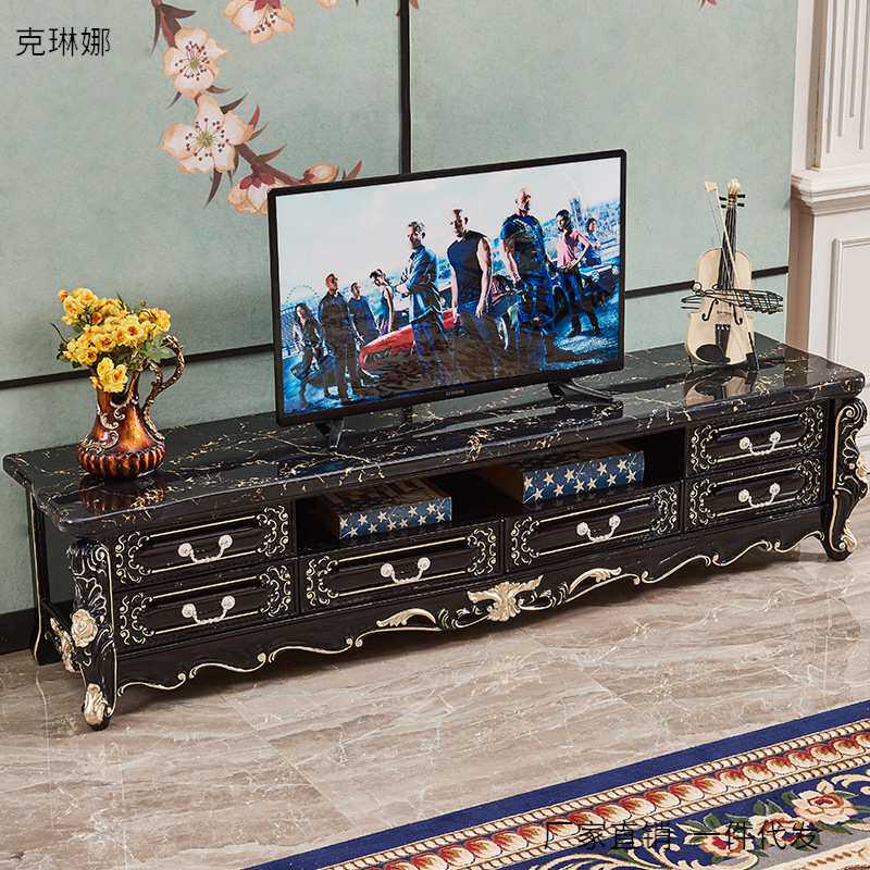 欧式大理石电视柜现代简约实木地柜黑檀色客厅茶几电视柜组合套装