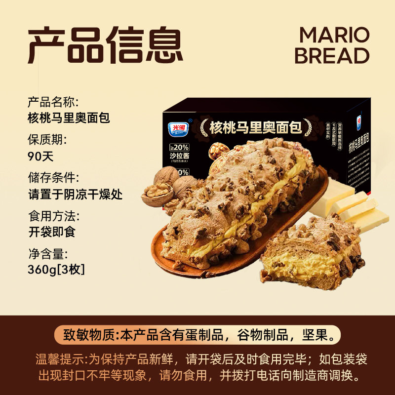 光明核桃马里奥夹心面包整箱坚果欧包学生营养早餐小零食切片国货