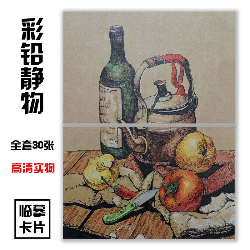 美术临摹卡绘画参考创意彩铅静物少儿美术生画画范本30张高清