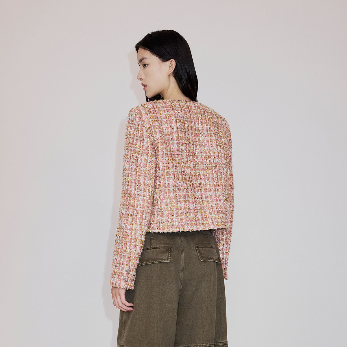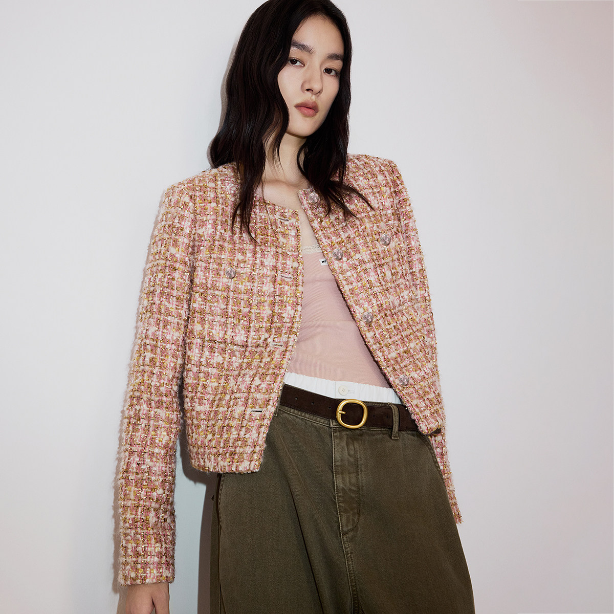 【新品】OCHIRLY欧时力 金葱花式纱小香风外套羊毛含马海毛26春