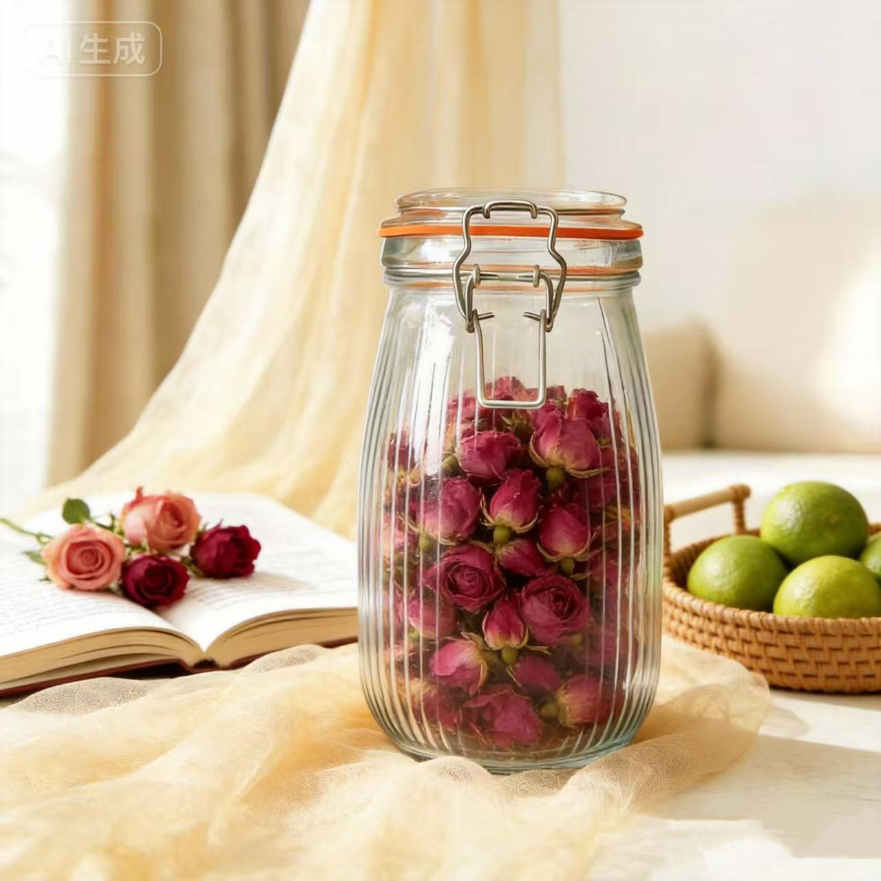 玻璃密封罐厨房杂粮食品储存罐子卡扣果酱储物罐茶叶收纳罐蜂蜜L