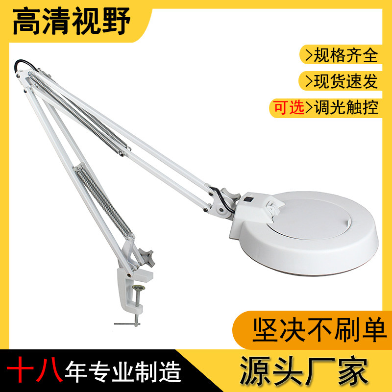 夹台式工作照明放大镜超高清维修用器业鉴宝可选白玻调光学LED灯