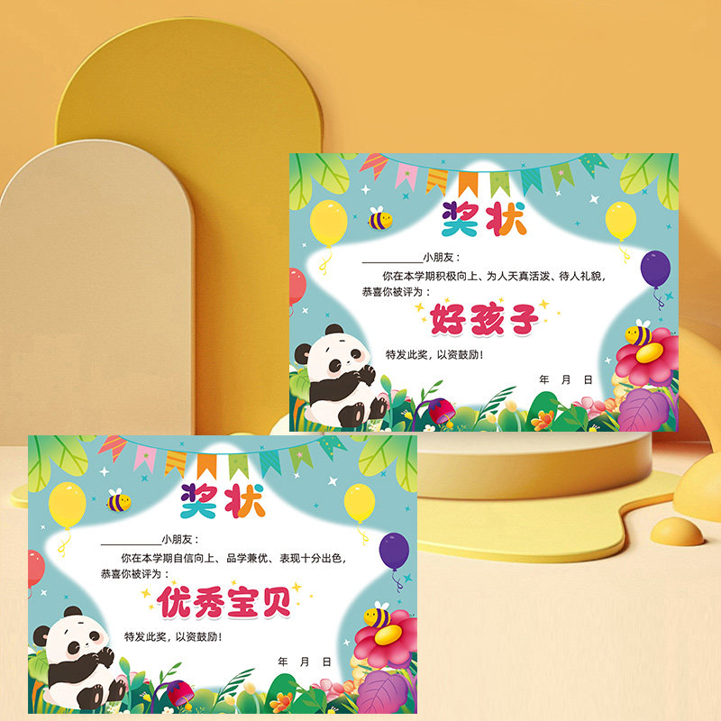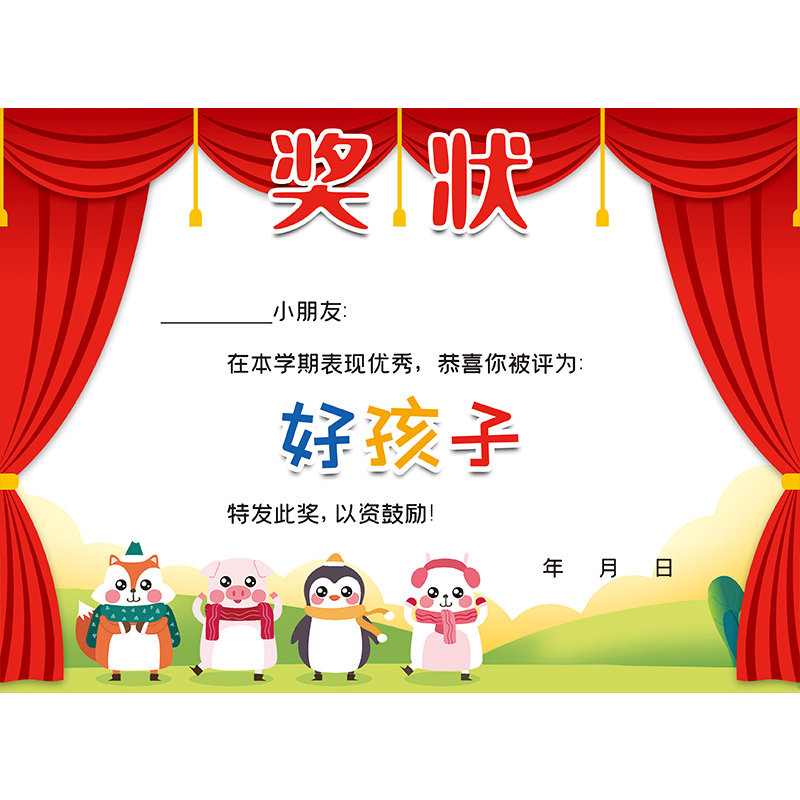A4幼儿园好孩子 进步 优秀 学期末小奖状 加厚创意卡通多款混装可定制
