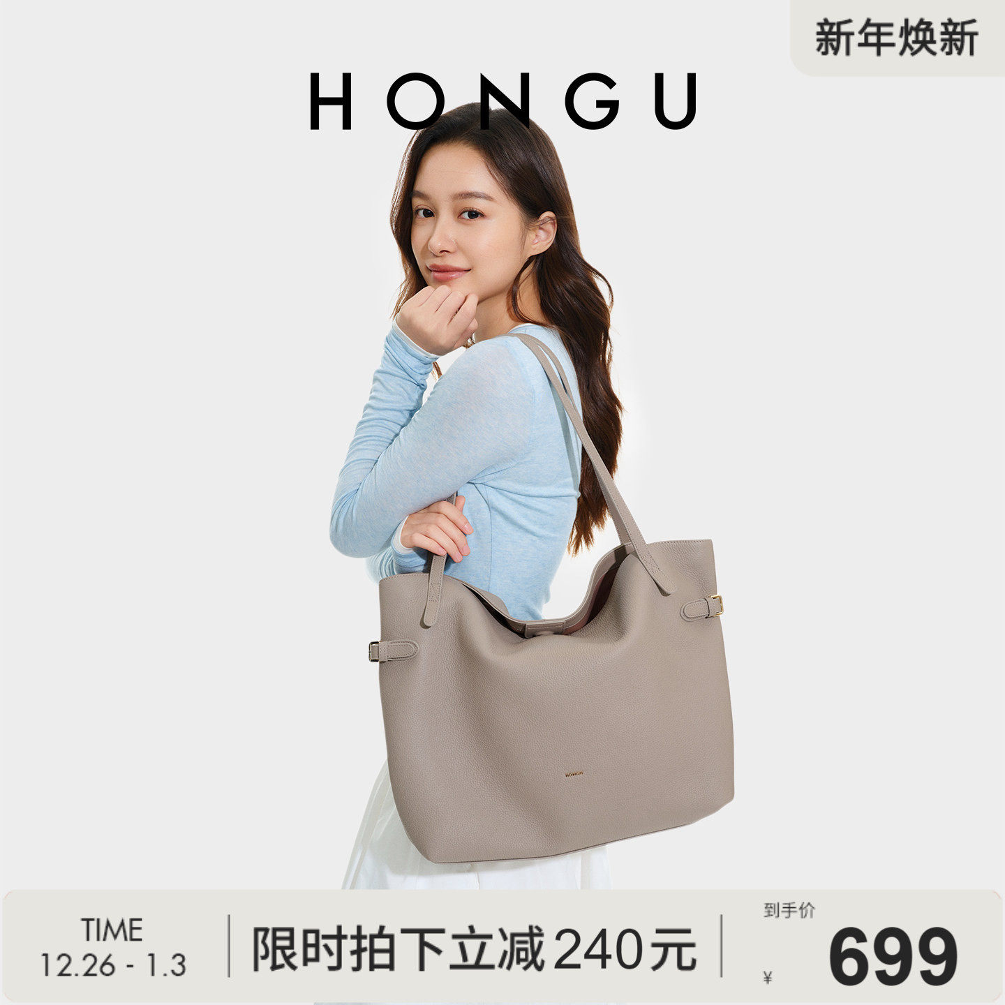 红谷包包女式2025新款真皮单肩手提包通勤上班大容量托特包女士包