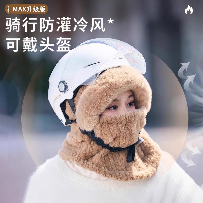 雷锋帽东北防寒帽子围巾一体男女秋冬加绒加厚防风护耳骑行帽滑雪