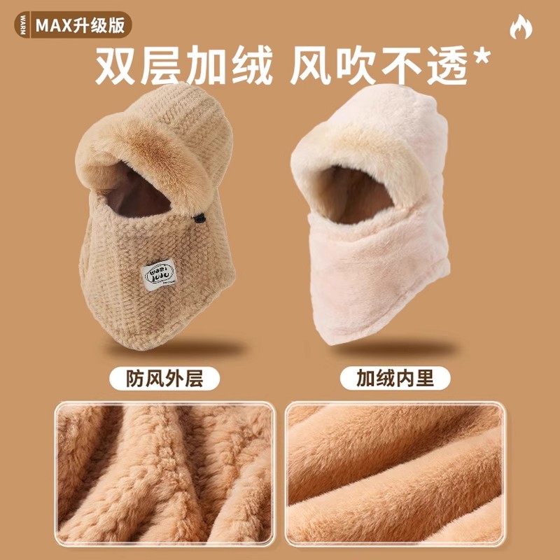 围巾帽子手套一体女连帽冬季帽可爱保暖围脖毛绒冬天三件套厚防寒