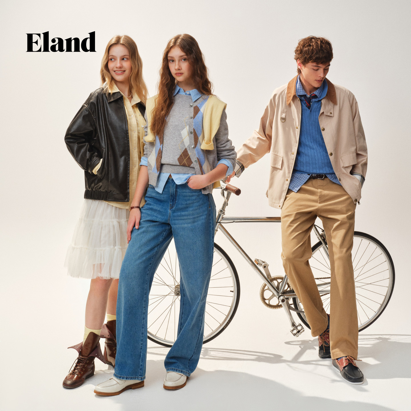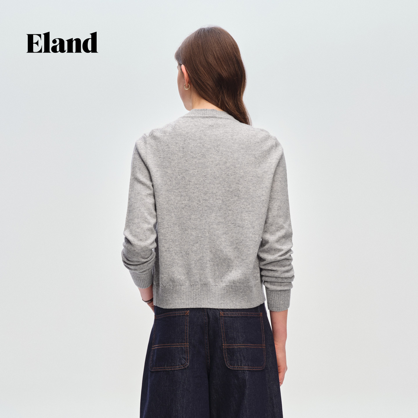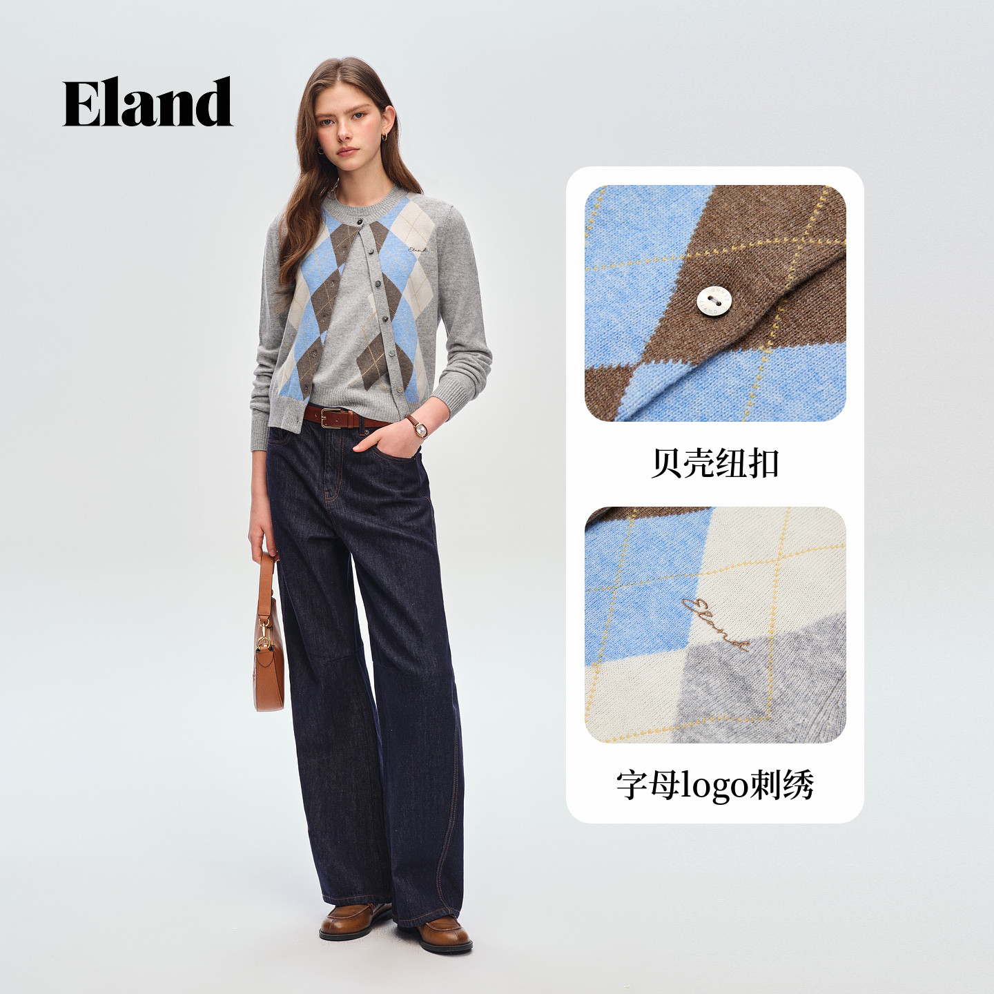 【30%绵羊毛】Eland衣恋毛针织衫女学院风撞色菱格开衫2026春新款