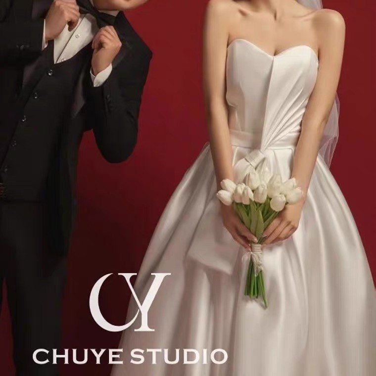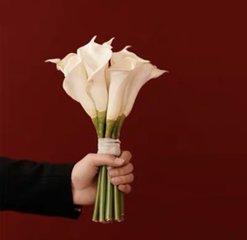 复古婚纱摄影拍照道具手捧花 领证白色郁金香马蹄莲 手工仿真花束