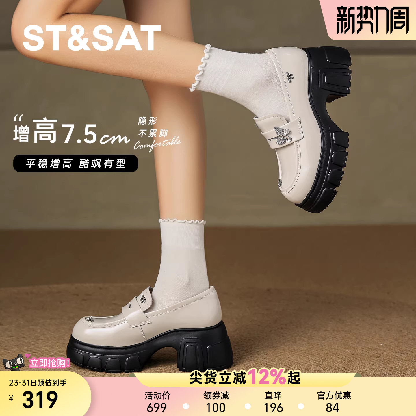 星期六真皮乐福鞋女春季2026新款一脚蹬单鞋厚底增高英伦风小皮鞋