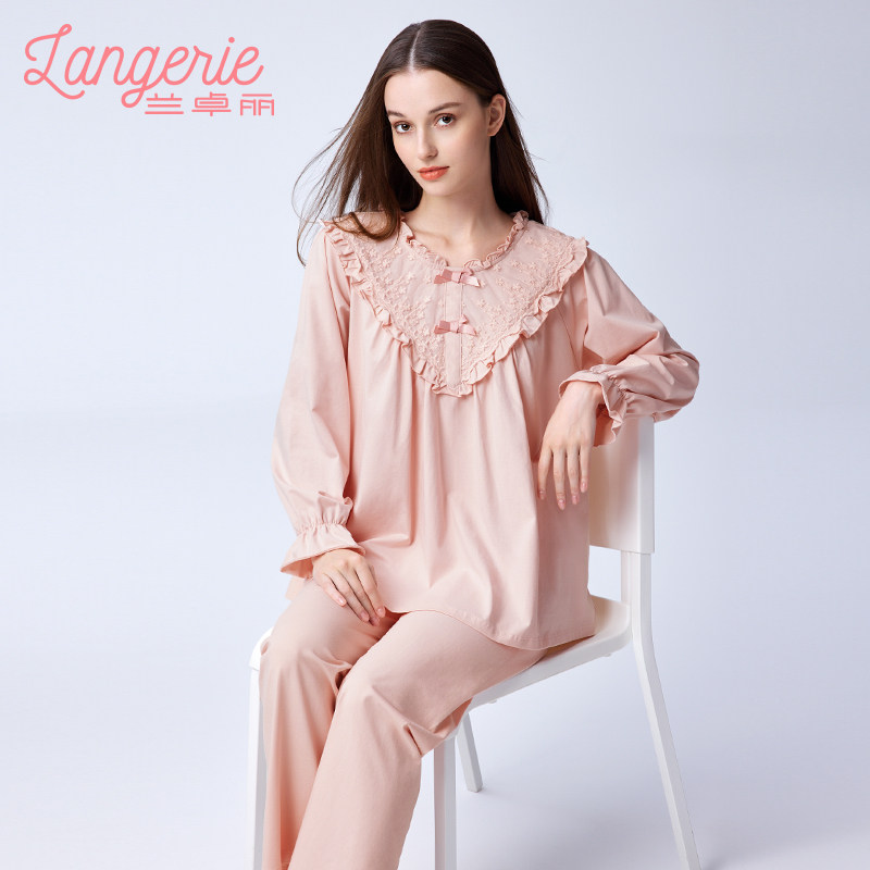 兰卓丽女士家居服上下套装A字娃娃衫上衣长袖长裤宽松睡衣春秋款