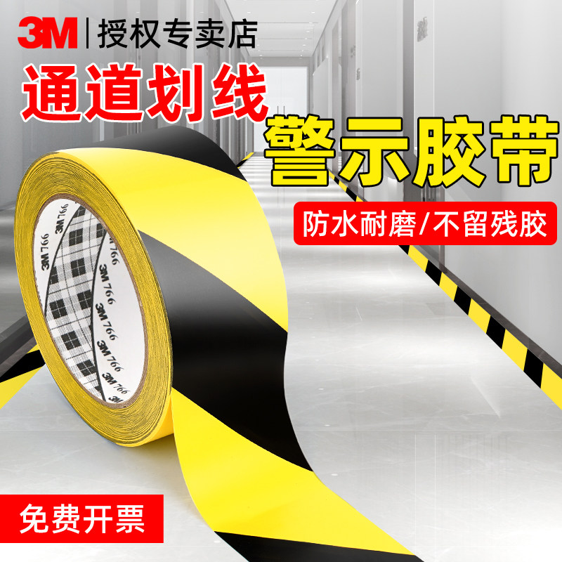 3M471地板警示胶带高粘黑黄斑马线地标划线单面无痕5S标识车间定位胶带PVC耐磨地面保护膜专用安全通道