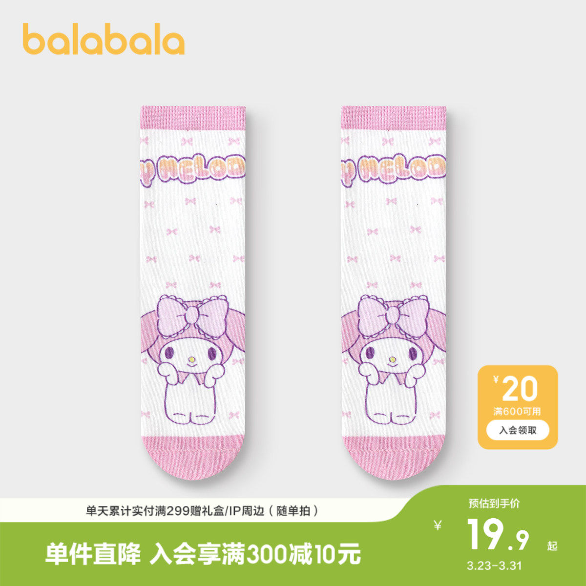 【酷洛米IP】巴拉巴拉女童袜子儿童短袜夏印花弹力单双装
