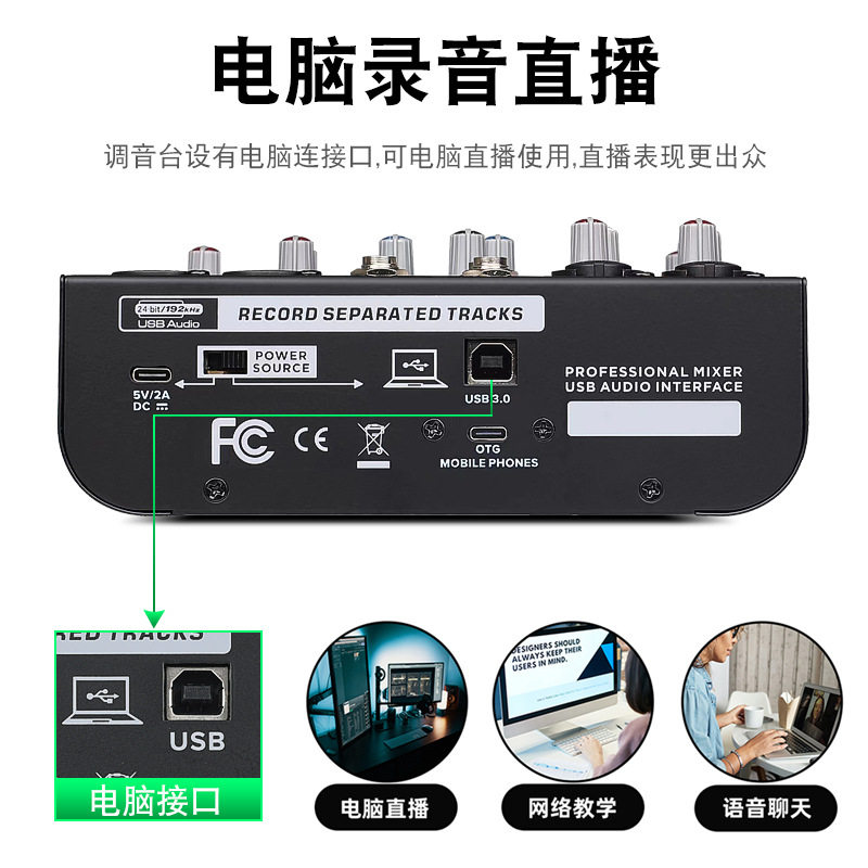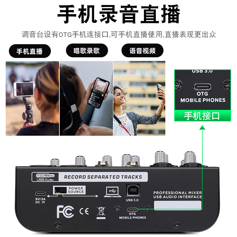 4路调音台声卡DSP混响OTG手机电脑编曲录音直播K歌乐器户外演出