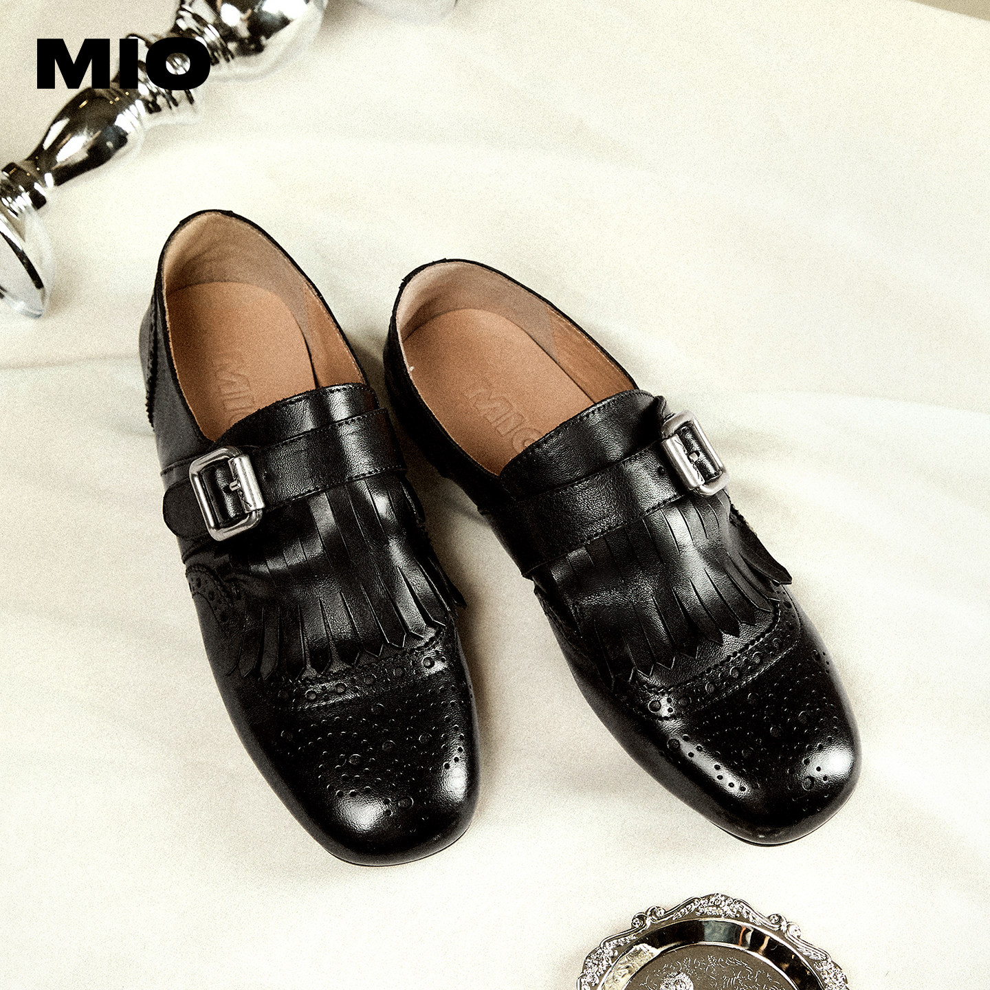 MIO米奥布洛克雕花流苏小皮鞋2026春季新款牛津复古牛皮革乐福鞋