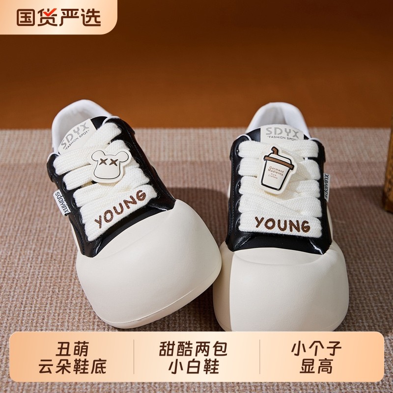 厚底小白鞋2026春季增高6CM丑萌大头鞋透气百搭面包鞋女圆头鞋子