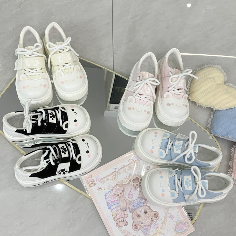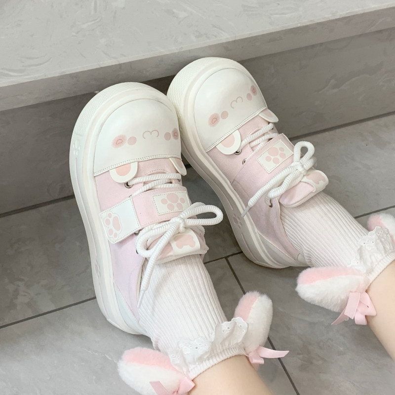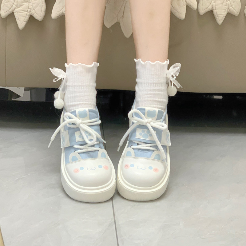 宅系圆滚滚可爱软萌lo鞋大头厚底帆布鞋女增高lolita冬季加绒板鞋