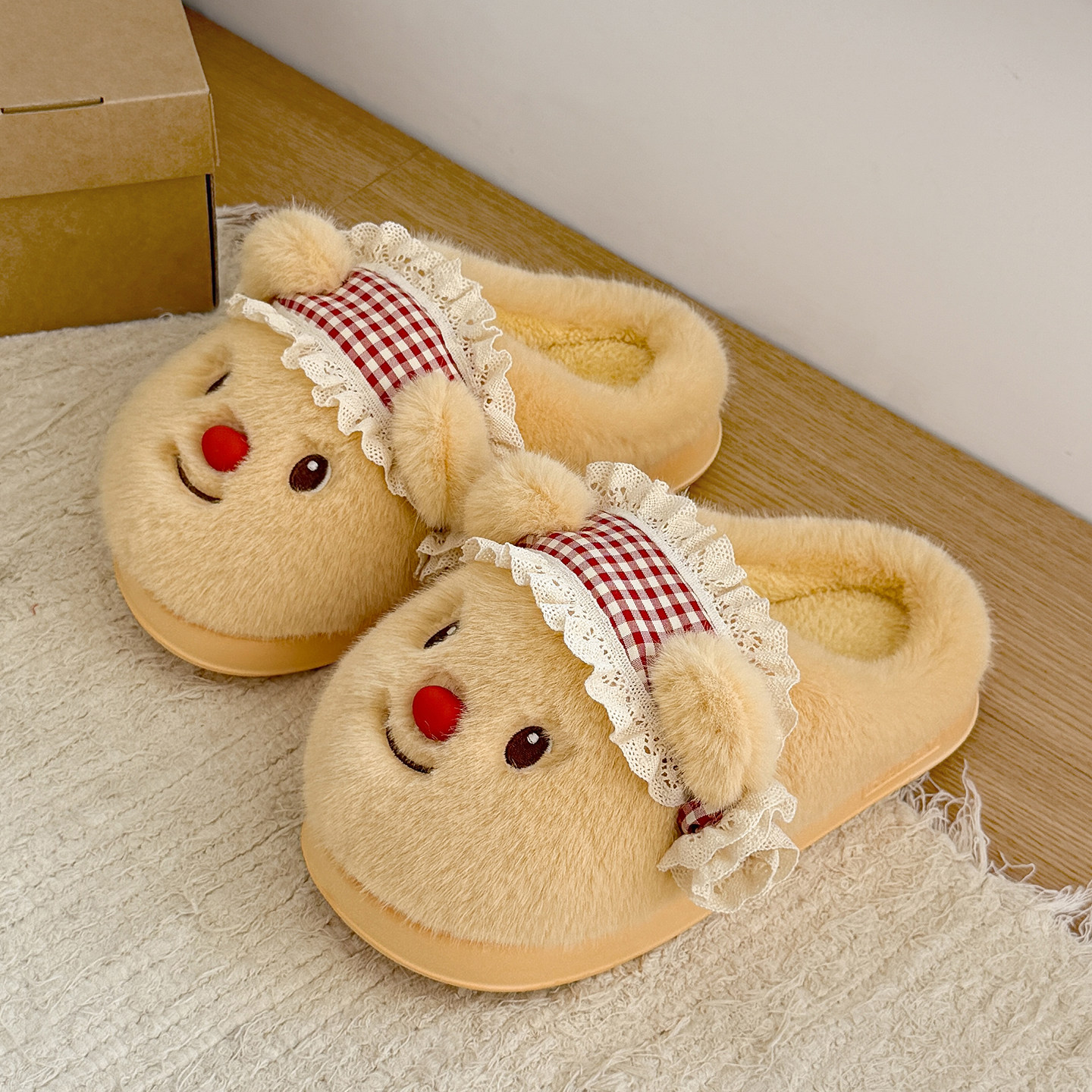 软萌小熊棉拖鞋女款冬季2025新款室内居家保暖包头棉拖女士防滑